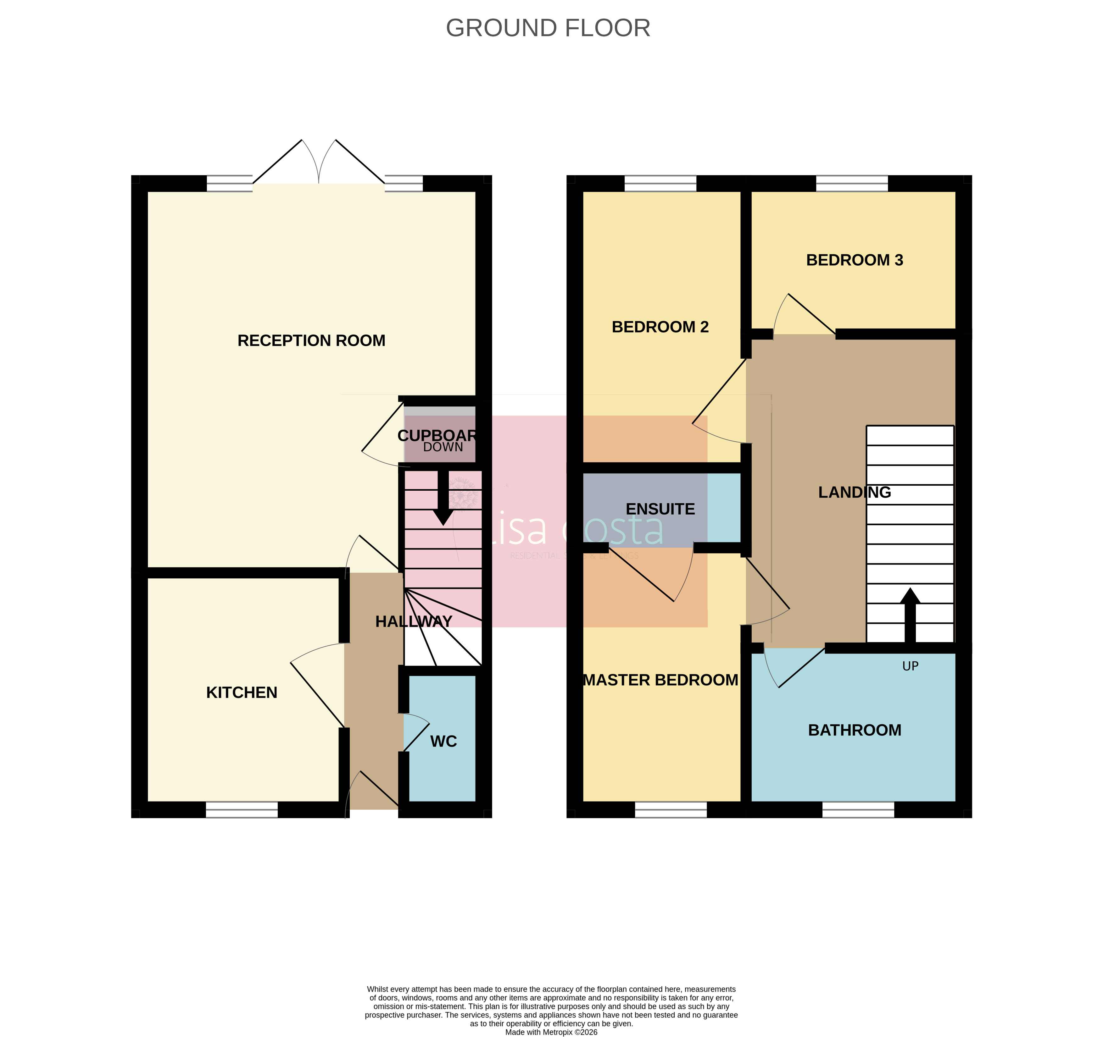 Step inside to a welcoming entrance hall that leads to a handy downstairs wc, perfect for guests. The modern fitted kitchen is both stylish and practical, offering plenty of space for preparing your favourite meals and dining. At the rear of the house, the relaxing lounge and dining area overlook the garden, creating a bright and airy space for entertaining or unwinding at the end of the day. Upstairs, there are three well-proportioned bedrooms. The master bedroom is a real highlight, boasting its own en-suite shower room for a touch of luxury. The main bathroom is fresh and contemporary, serving the other two bedrooms.
