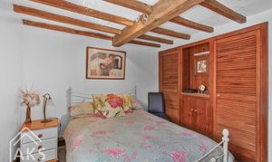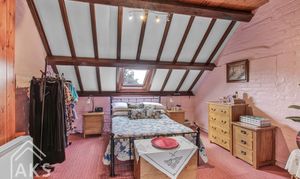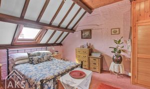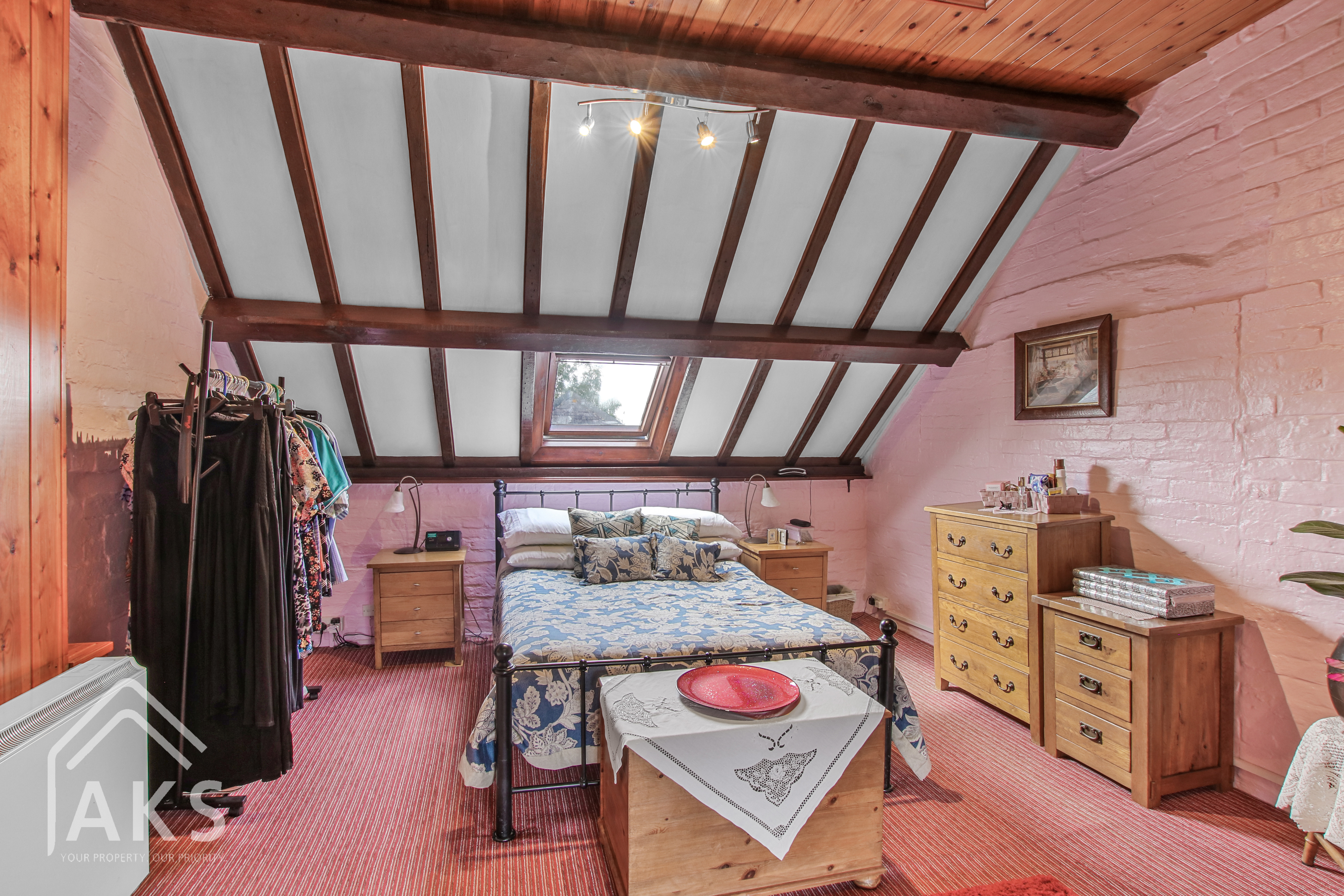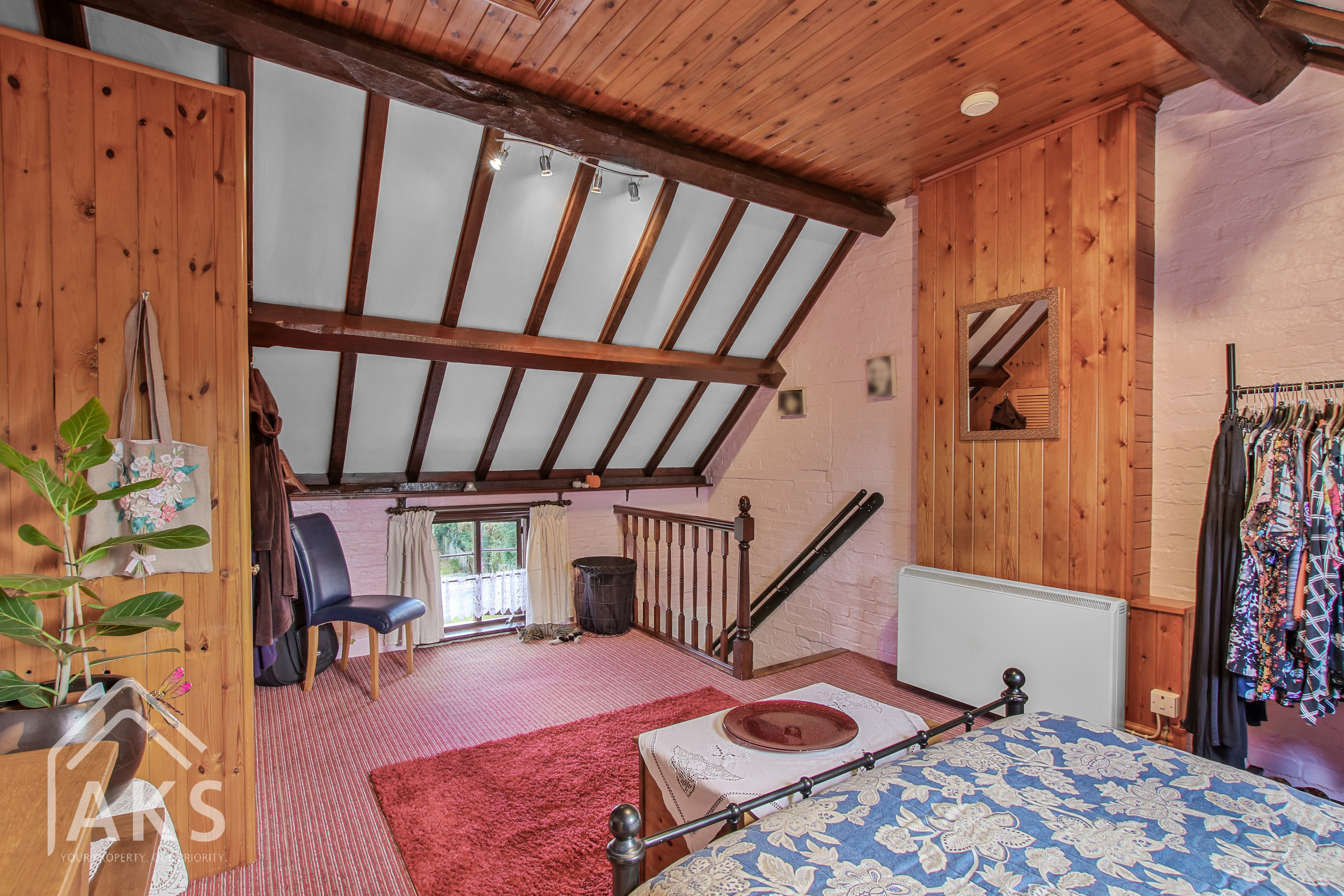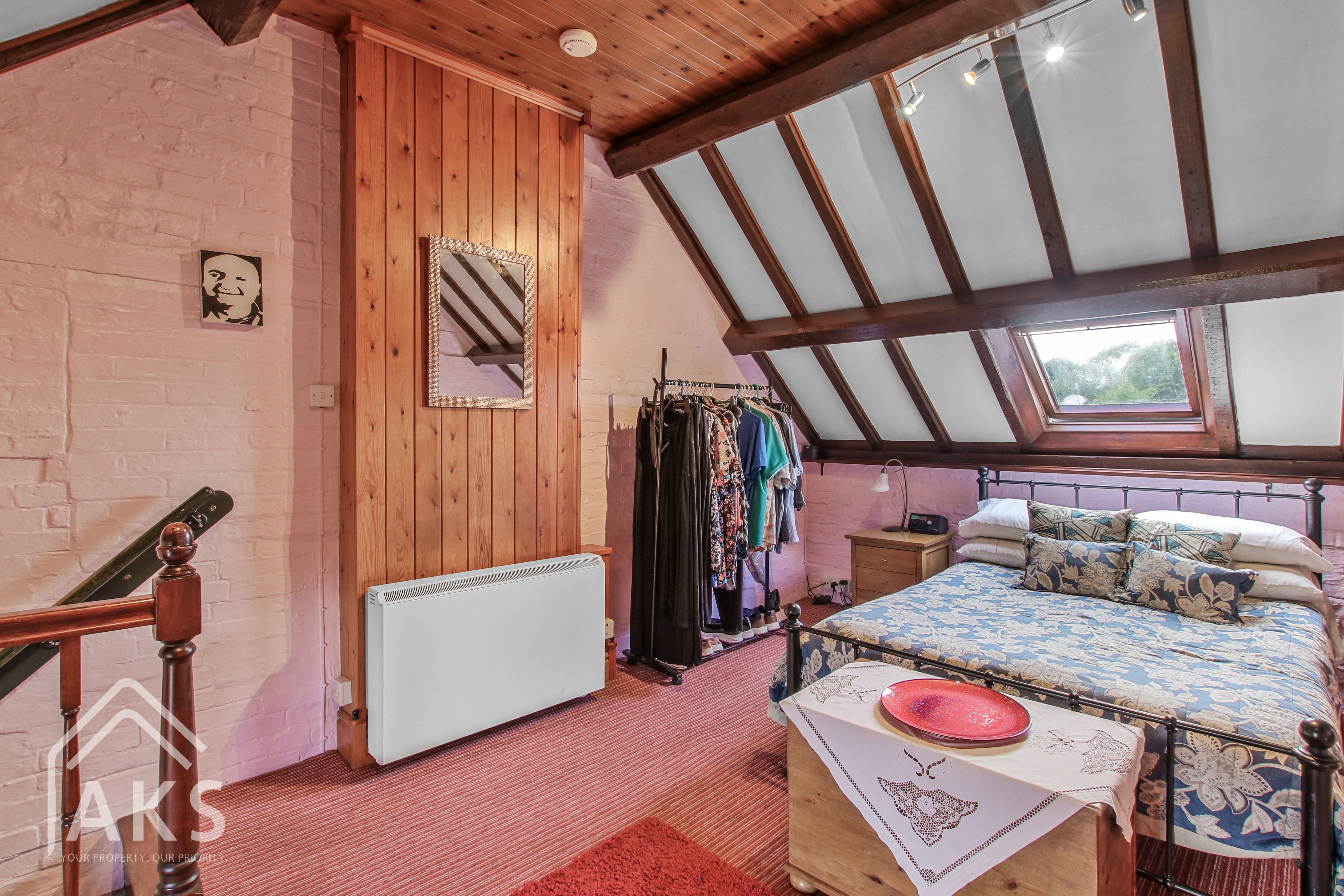 On the middle floor there is a double bedroom with built in wardrobes and next to this is the recently modernised family shower room. The whole of the top floor is the main bedroom, with built in wardrobes as well as plenty of room for additional furniture. the views from here are just beautiful, looking out into the garden and the countryside beyond. There is also a velux window placed above the bed, imagine the stargazing!