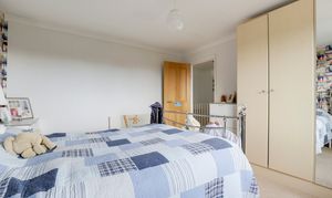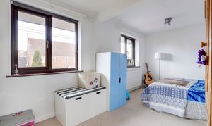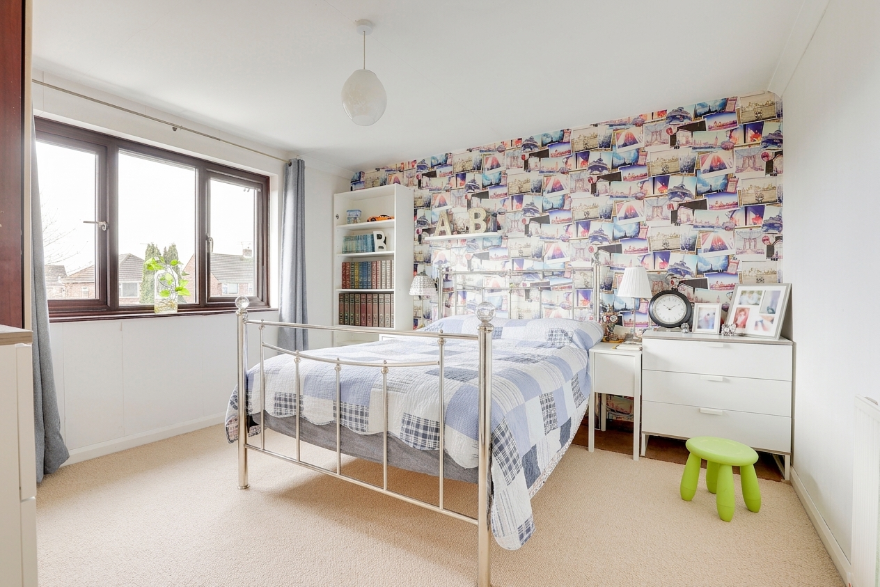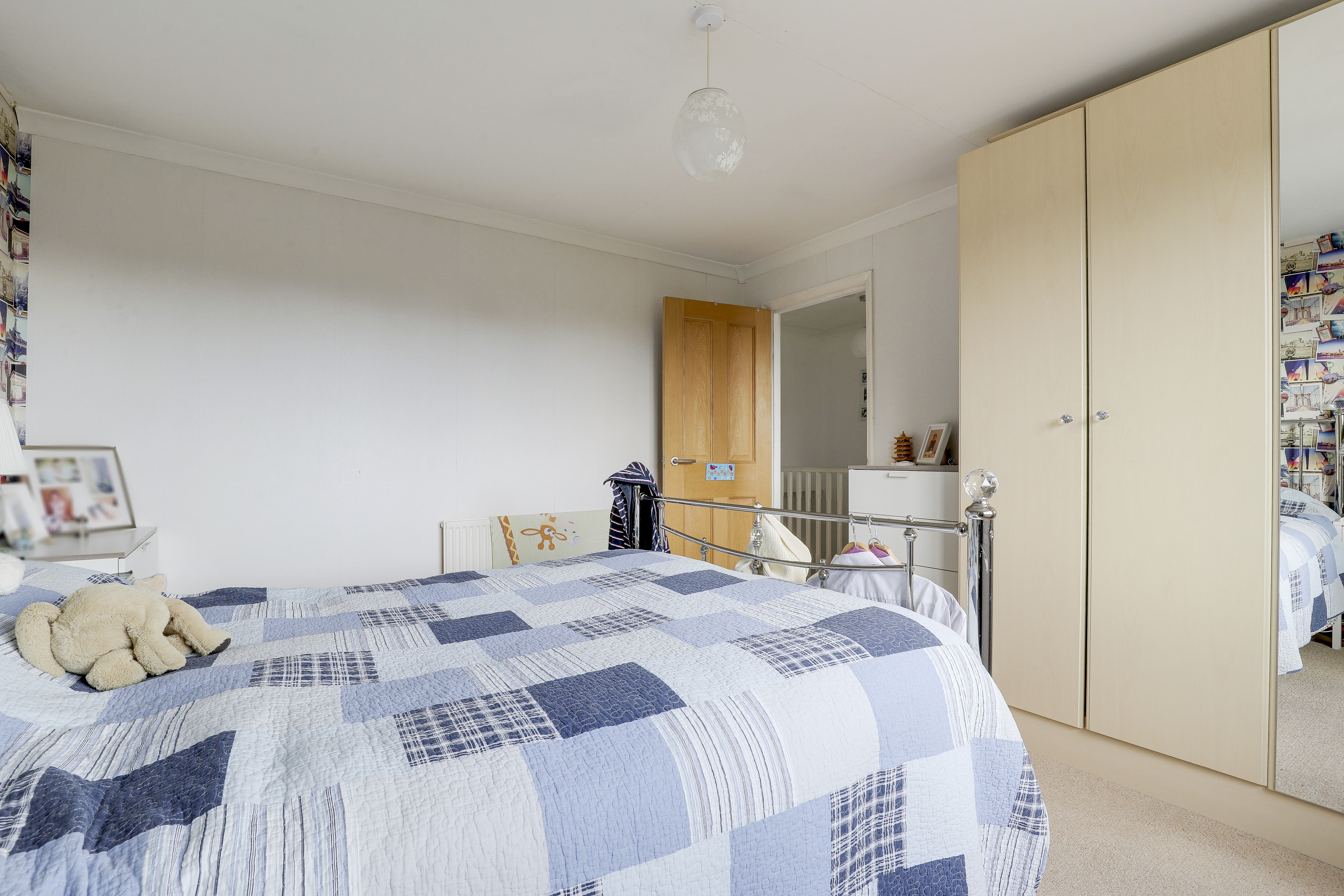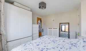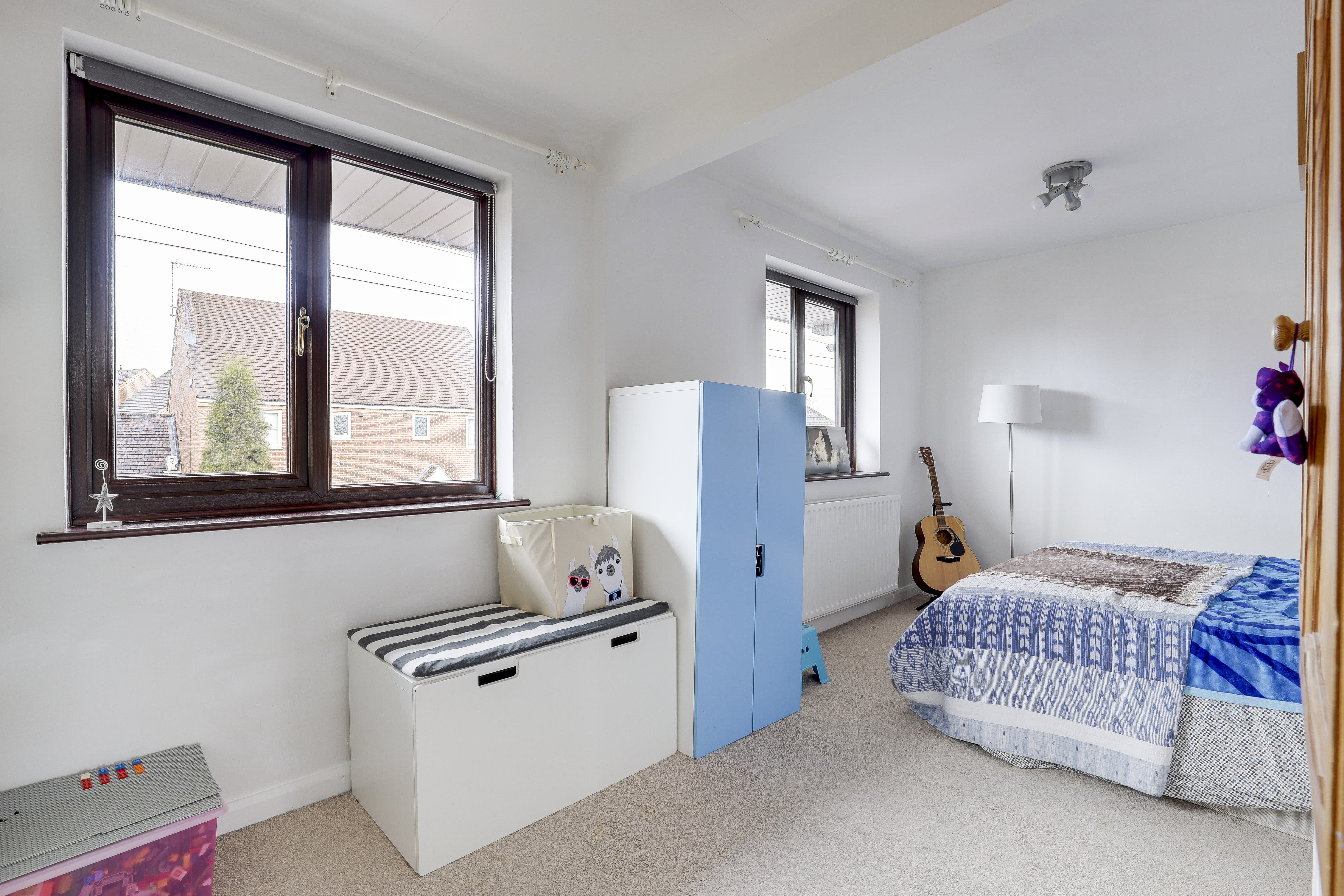 The third bedroom has two wooden framed UPVC double glazed windows to the front elevation, a radiator, an in-built cupboard, and carpeted flooring.