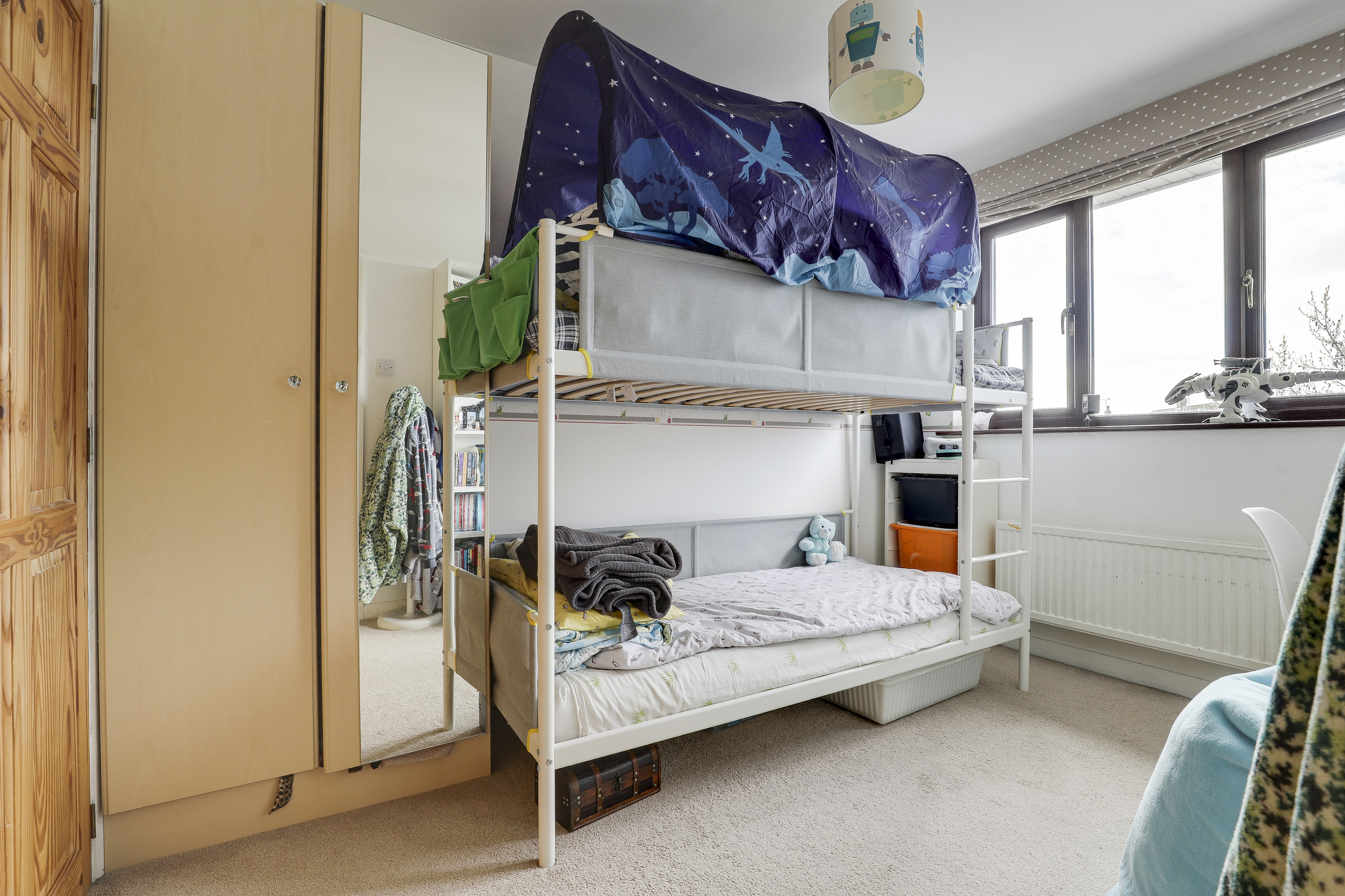 The fourth bedroom has a wooden framed UPVC double glazed window to the rear elevation, a radiator, an in-built cupboard with double doors, and carpeted flooring.