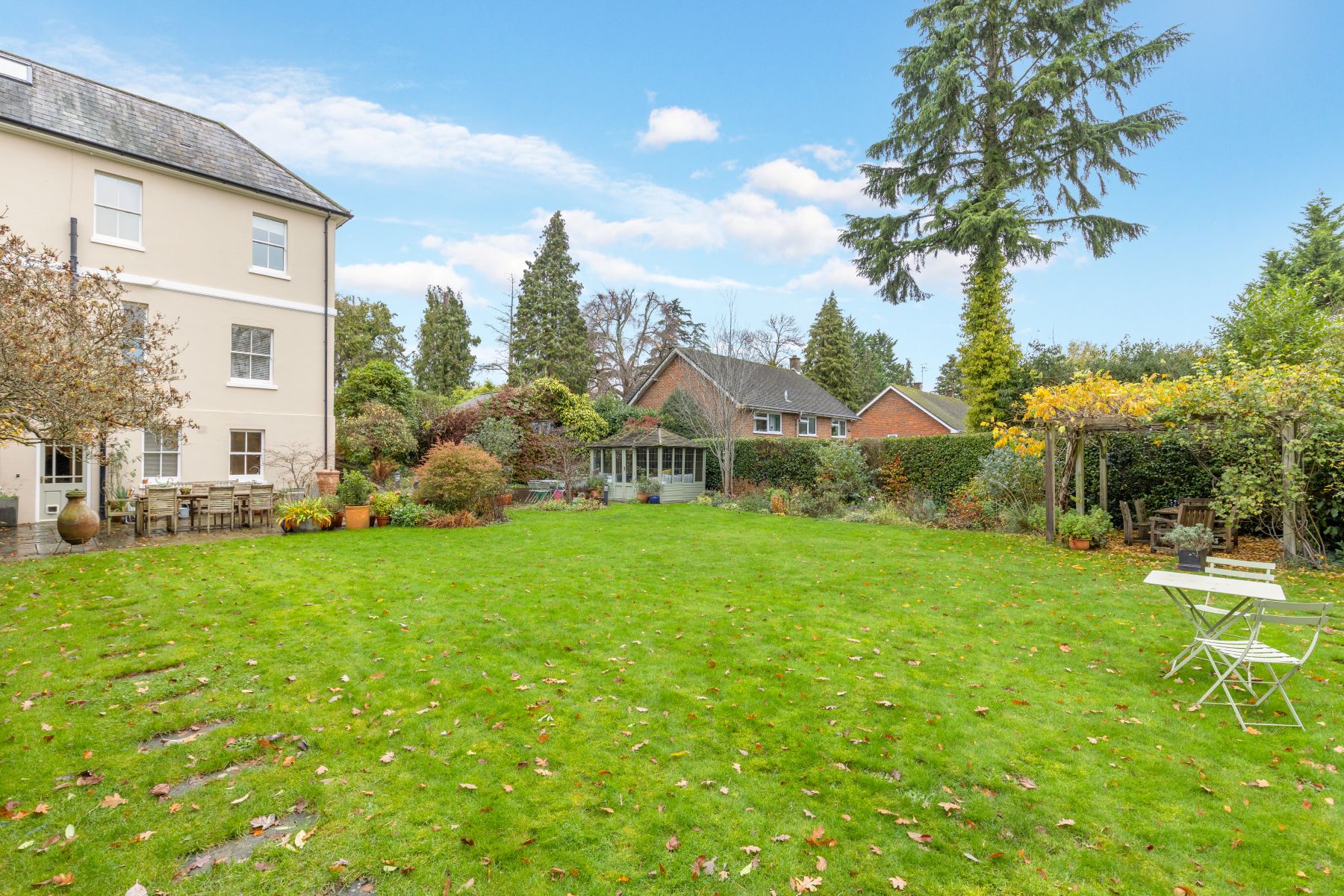 Large garden and very private. There is also a summer house and a greenhouse.