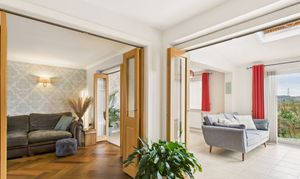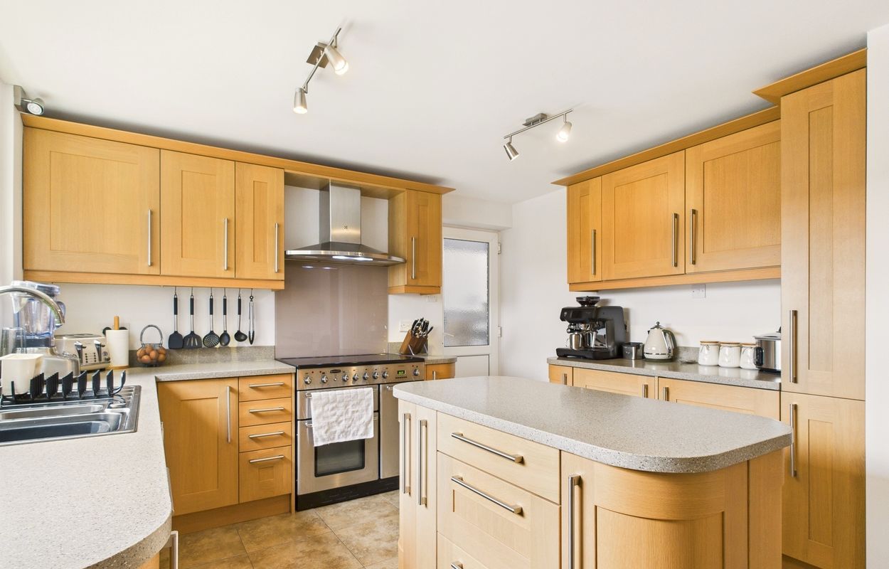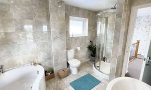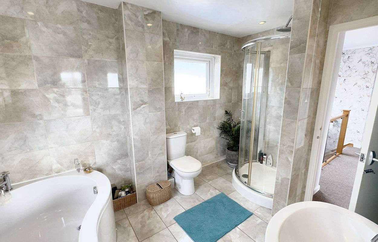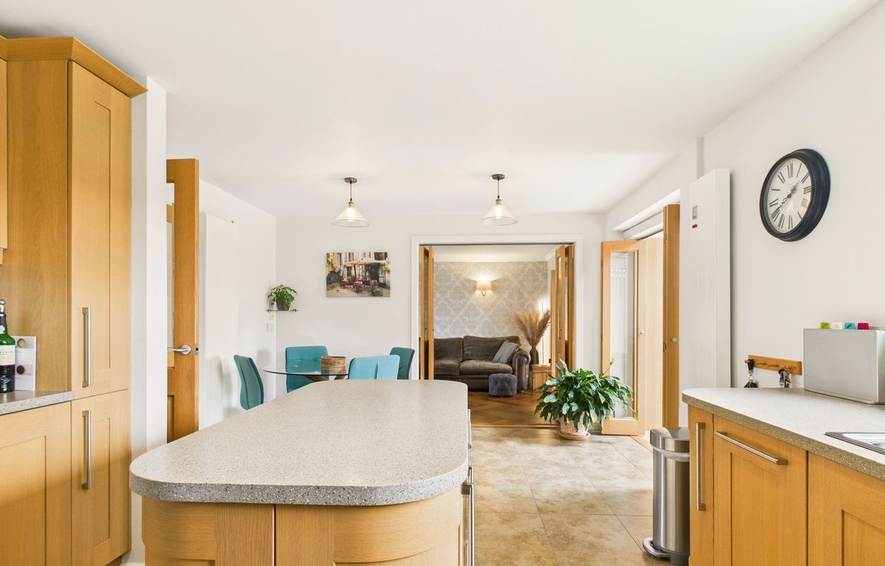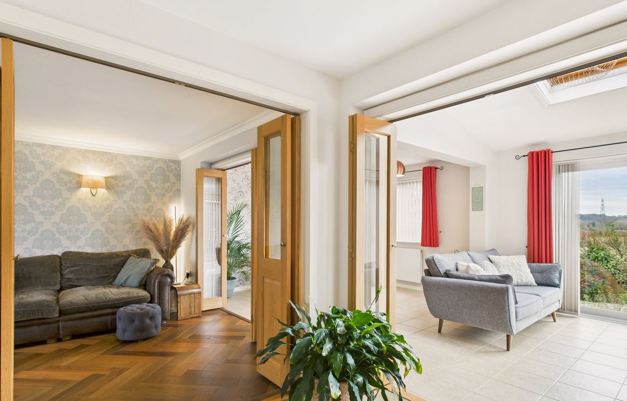 Transformed on the ground floor to create a contemporary layout, the home flows seamlessly from one room to another, making it ideal for family living and entertaining alike. At its heart lies a stylish kitchen with a central island and high-quality integrated appliances, opening into a bright and welcoming dining/family room where the panoramic countryside views can truly be appreciated. There is also a cosy Living Room with delightful wood burner, ideal for those winter evenings!