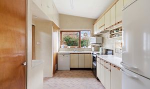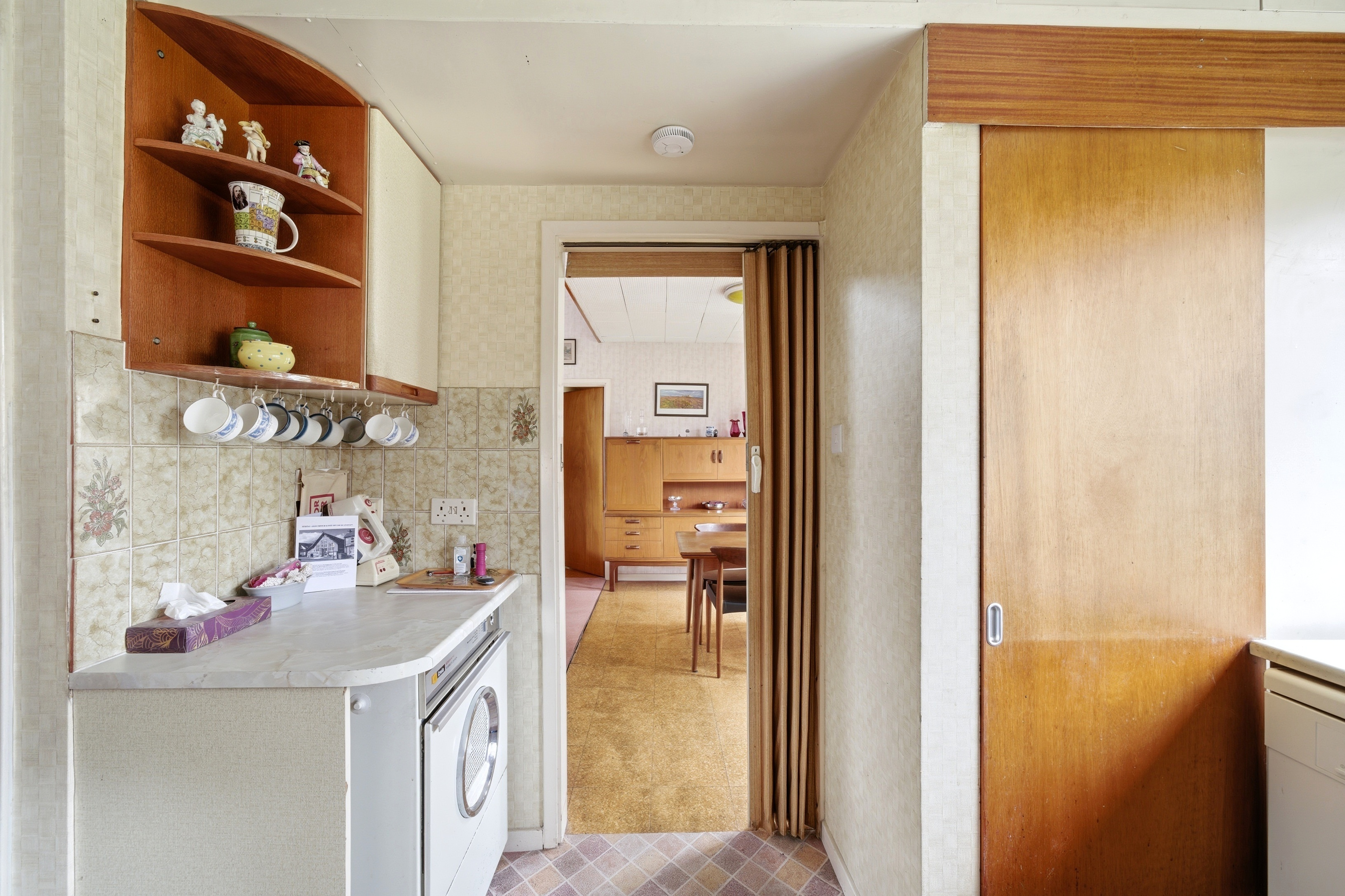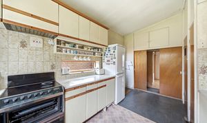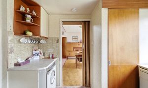 The fitted kitchen sits just off the main living area and offers a range of storage units and worktop space, along with access to the side of the property.