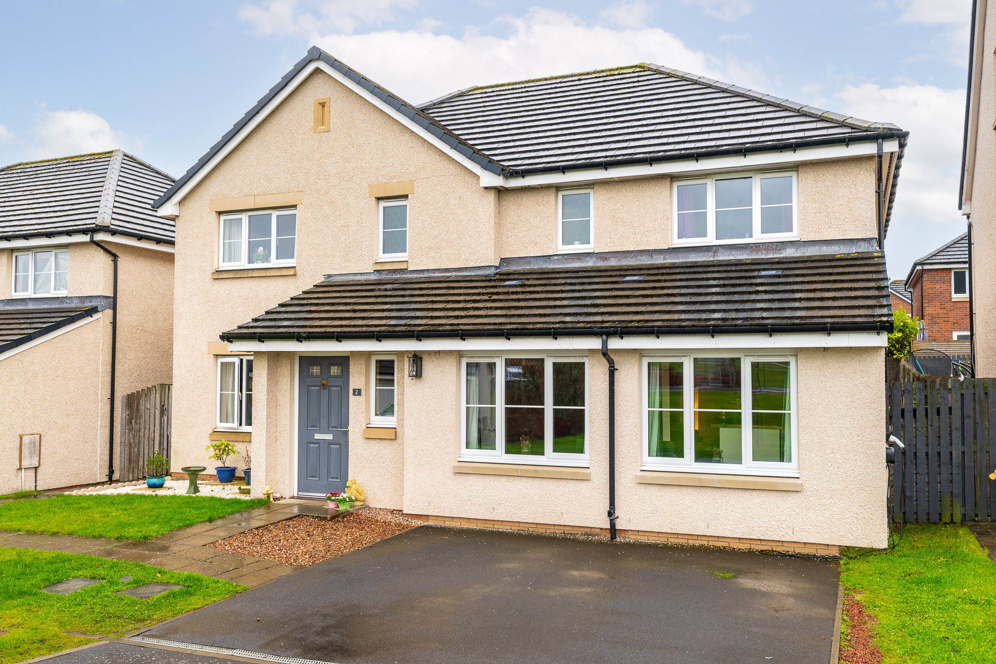 Welcome to Eilston Terrace, Kirkliston, an exceptionally spacious five bedroom detached home built by Barratt Homes in 2014, forming part of a highly desirable residential development. The impressive Calendar house type is one of the largest styles within the development and has been further enhanced by a full double garage conversion, creating a substantial and versatile family home. With four bathrooms, two en suites, a south facing landscaped garden and a two car driveway, this property offers outstanding space for modern family living.
