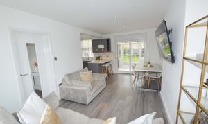 - MODERN INTERIOR WITH OPEN PLAN LOUNGE-DINING ROOM AND OPEN TO KITCHEN