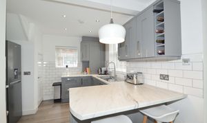 To the rear, the house enjoys a fabulous landscaped garden of generous proportion, thoughtfully designed for both relaxation and entertaining. The garden is not overlooked, ensuring a high degree of privacy and tranquillity, with mature planting and well-maintained lawns providing a picturesque backdrop for outdoor living. There is ample space for al fresco dining, children’s play, or the cultivation of a kitchen garden, while side access and a driveway to the front offer convenient off-road parking. The potential for further extension or the addition of a garden studio (subject to planning permission) enhances the appeal of this exceptional outdoor space.
