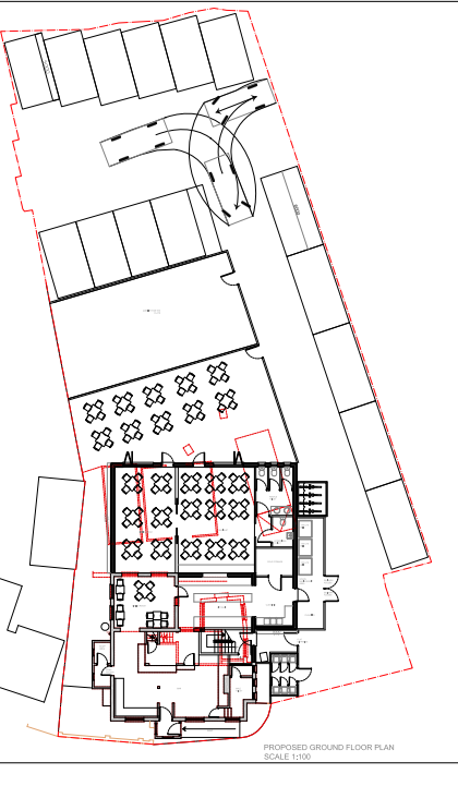 The site has a large car park to the rear, with access toward the side of the building providing eight car parking spaces for visitors of the now closed Public House. The approval increases to 10 spaces, EV charging stations, dedicated spaces for disabled users and bicycle capacity