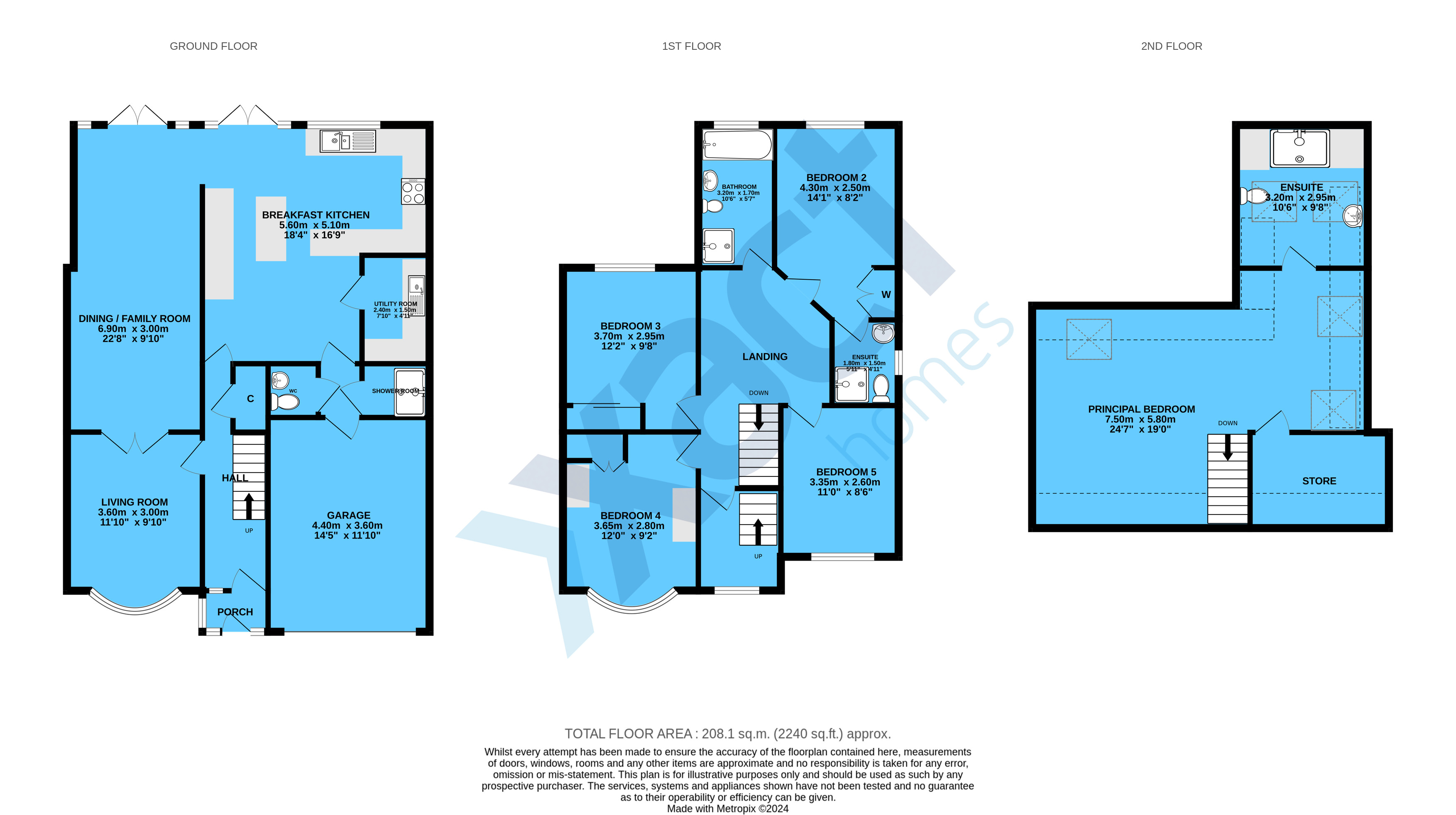 Total floor area: 208.1 sq.m. = 2240 sq.ft. approx.