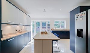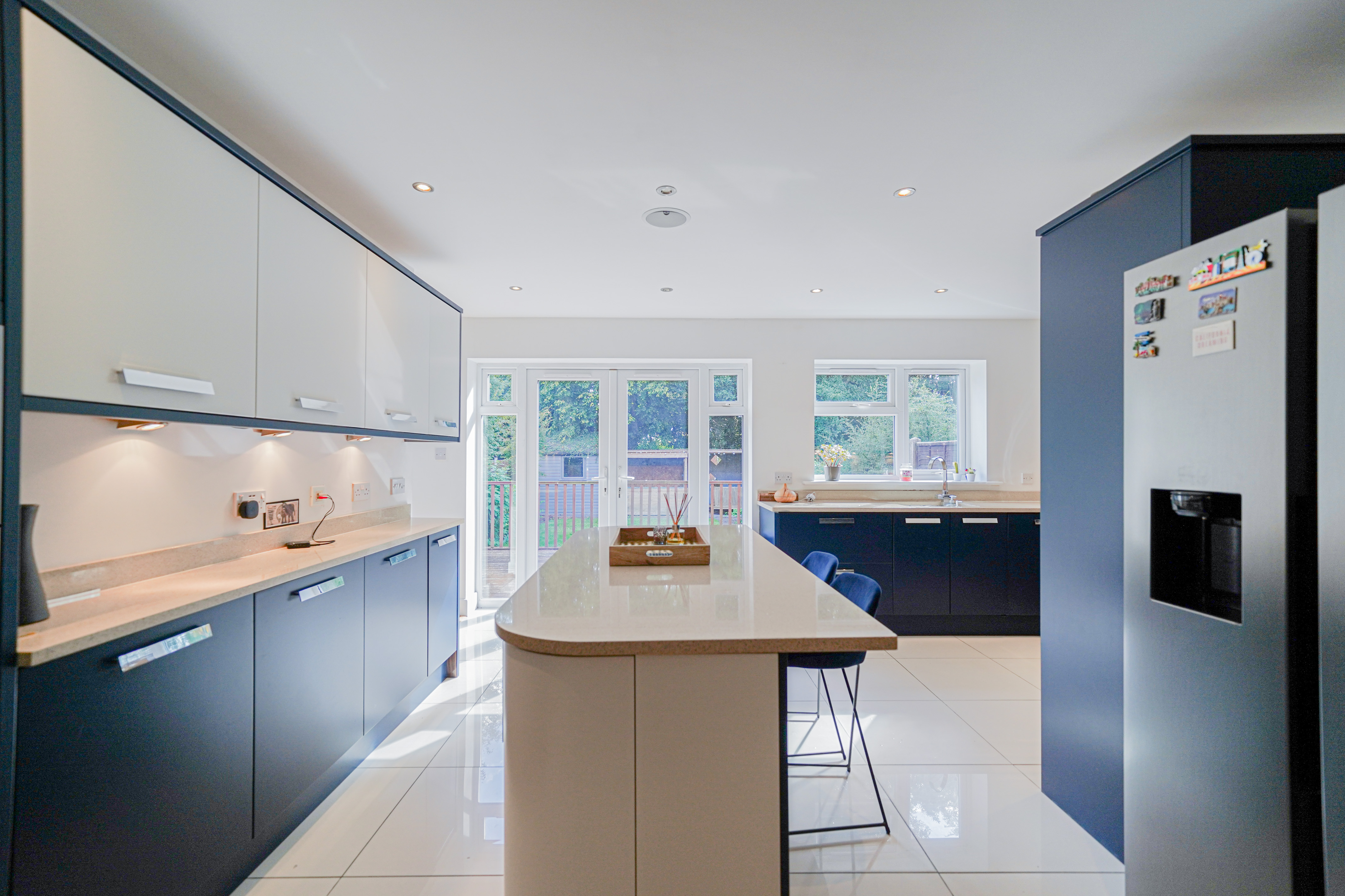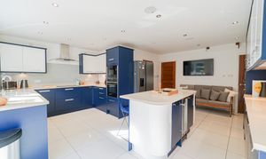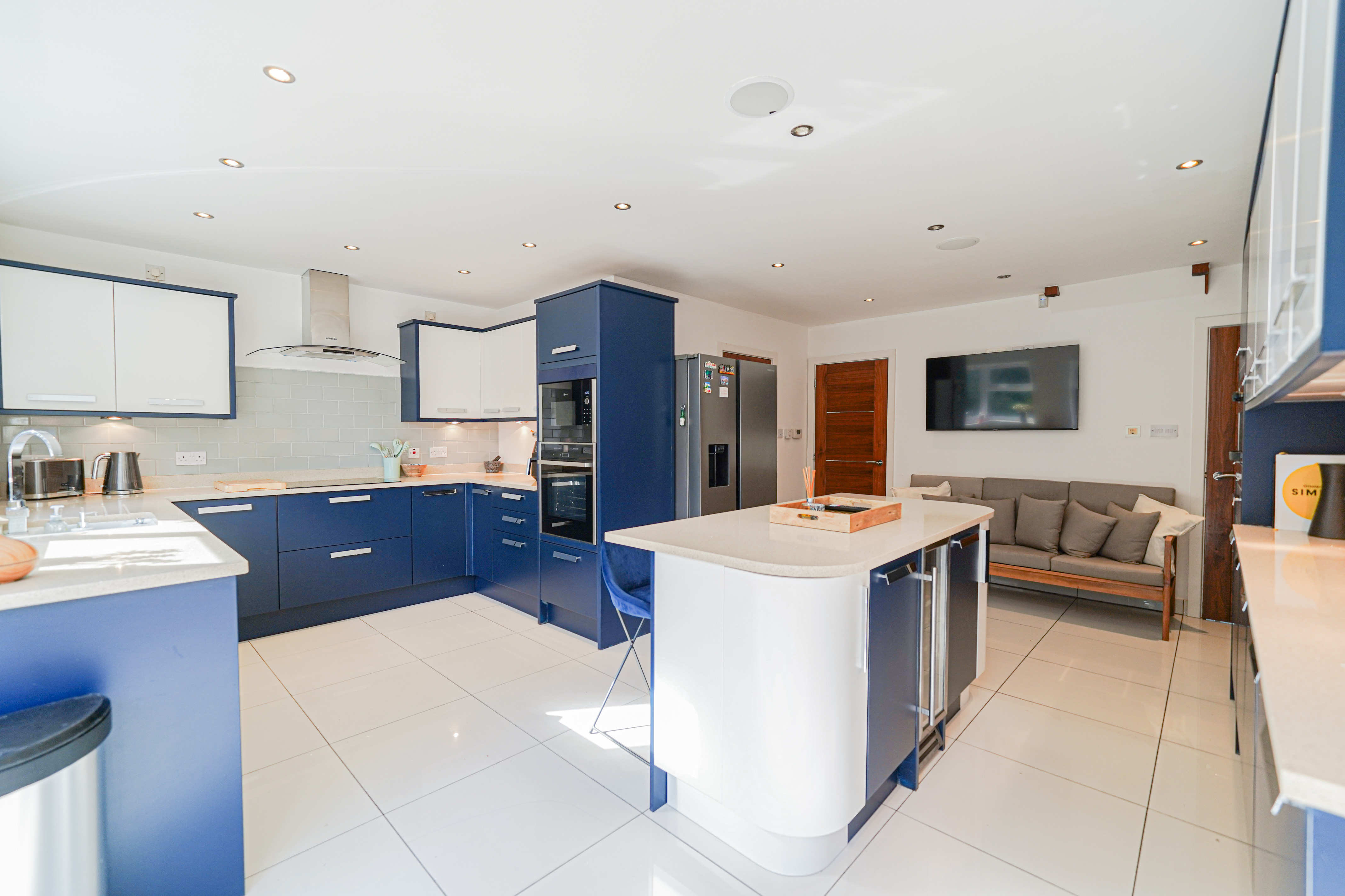 Upon entering, you are greeted by a light-filled and spacious entrance hallway that sets the tone for the rest of the home. The heart of the property is the stunning open plan kitchen, featuring an abundance of natural light, ample work surfaces, and a large central island perfect for family gatherings. The kitchen also benefits from underfloor heating, ensuring comfort all year round.