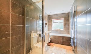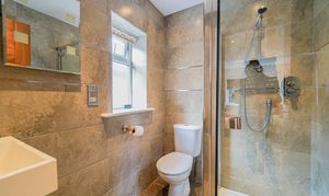 Completing the ground floor is a practical utility room, a convenient downstairs shower room and toilet, and a garage providing ample storage space. The first floor comprises four generously sized bedrooms, with bedroom two benefiting from an ensuite. The remaining bedrooms are serviced by a modern family bathroom.