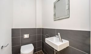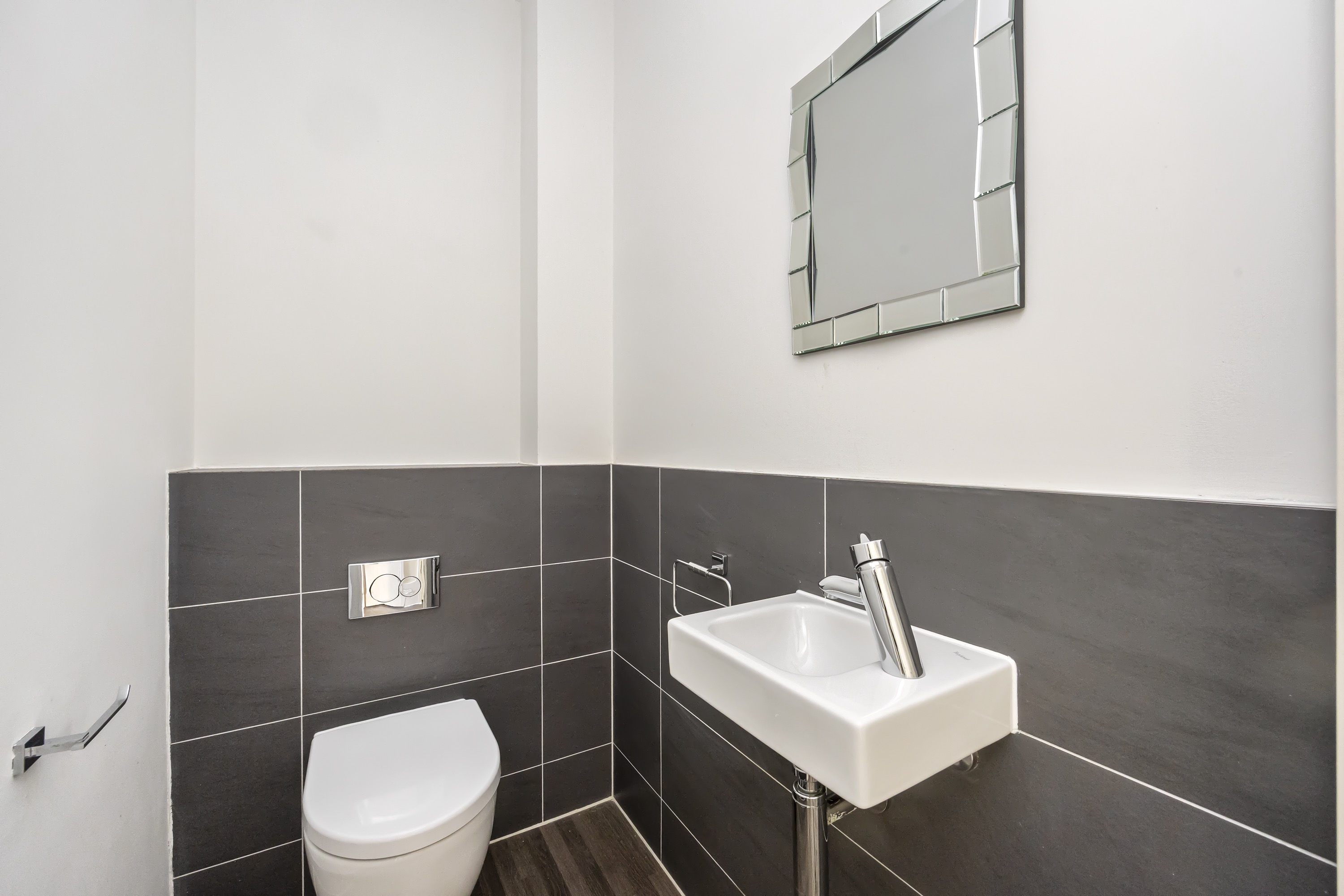 The kitchen has a range of wall and base units with contrasting worksurfaces running through and a selection of high-end integrated appliances ; an electric hob, electric oven, integrated dishwasher and fridge/freezer. Also of note to the ground floor is hard flooring as well as a cloakroom with quality bathroom fittings and Italian style tiling.