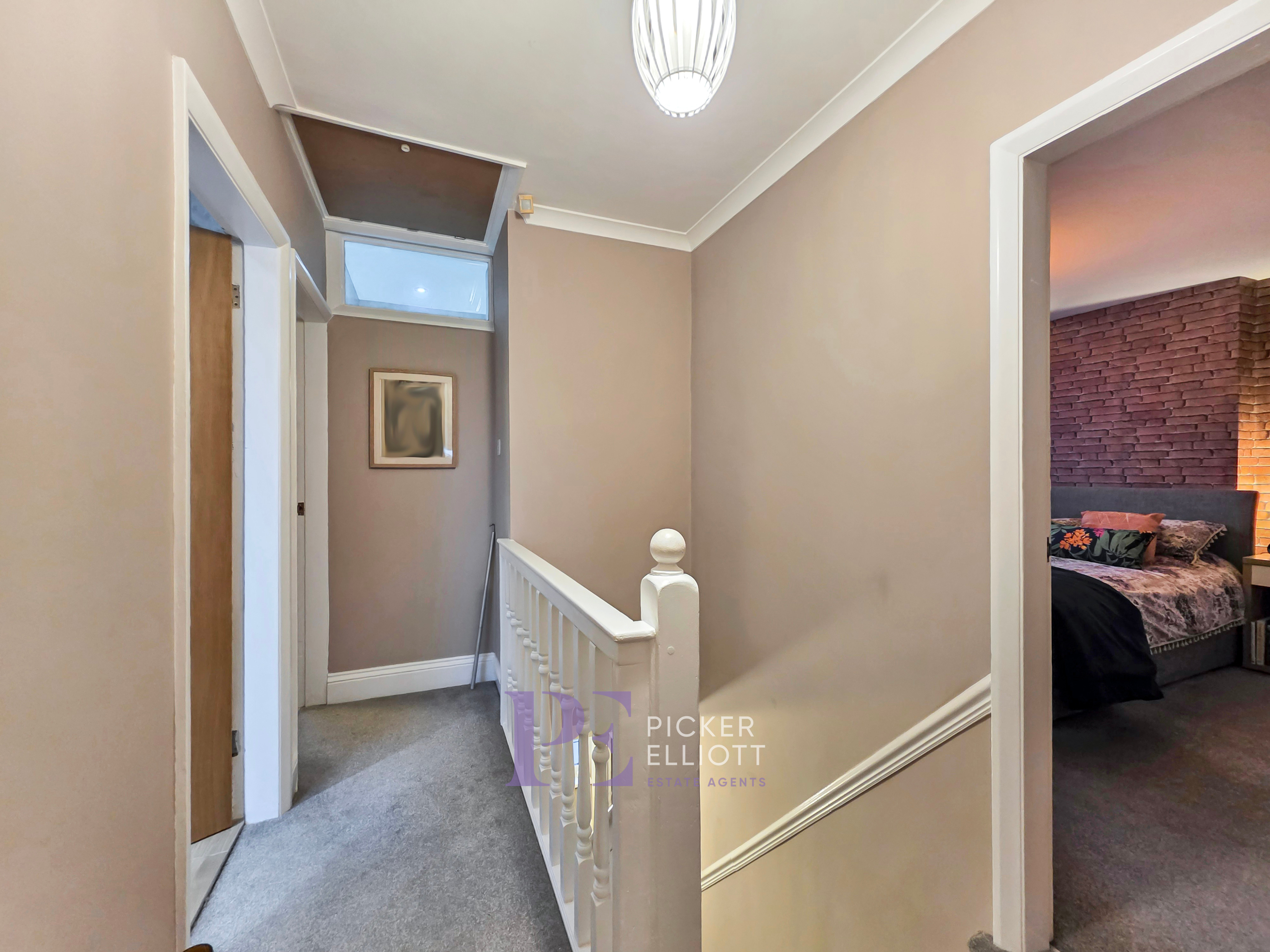 Spindle balustrade, drop-down loft hatch with integral loft ladder, doors to