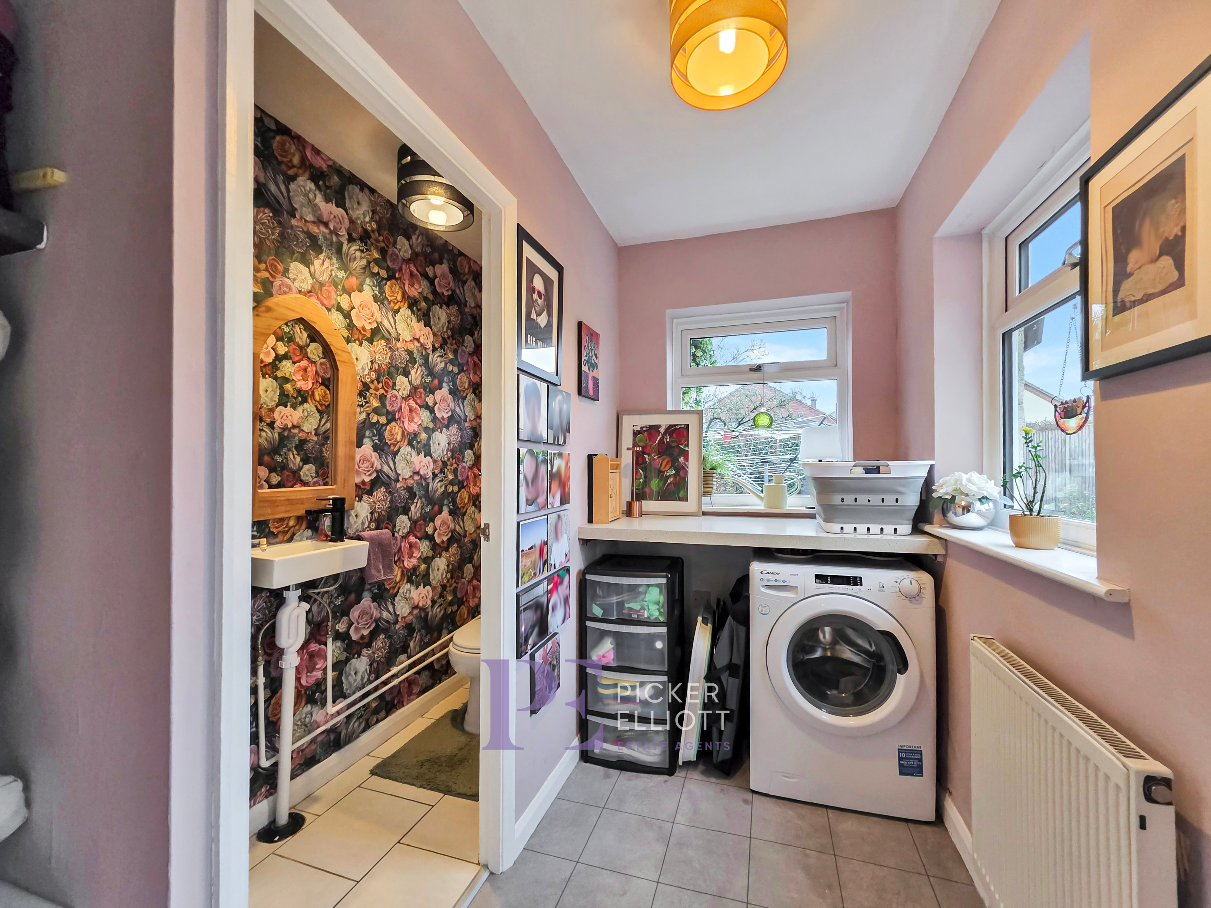 Two double glazed windows, radiator, opaque double glazed door, space for washing machine, space for tumble dryer