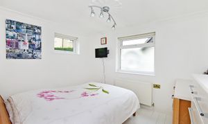 Fronted by a smart block paved driveway suitable for at least three cars and a converted garage now being used as a store room and useful utility room with power and lighting, the bungalow has two access doors - one leading through into a double bedroom, large dressing area with fitted cupboards and a stylish shower room, and the other via sliding patio doors into a lovely, bright and airy lounge which has double doors into a central hall with tiled flooring, modern fitted kitchen with a range of fitted units, and a double bedroom with an en-suite shower room.The property sits in delightful, private lawned gardens with a raised patio terrace benefitting from southerly aspects.
