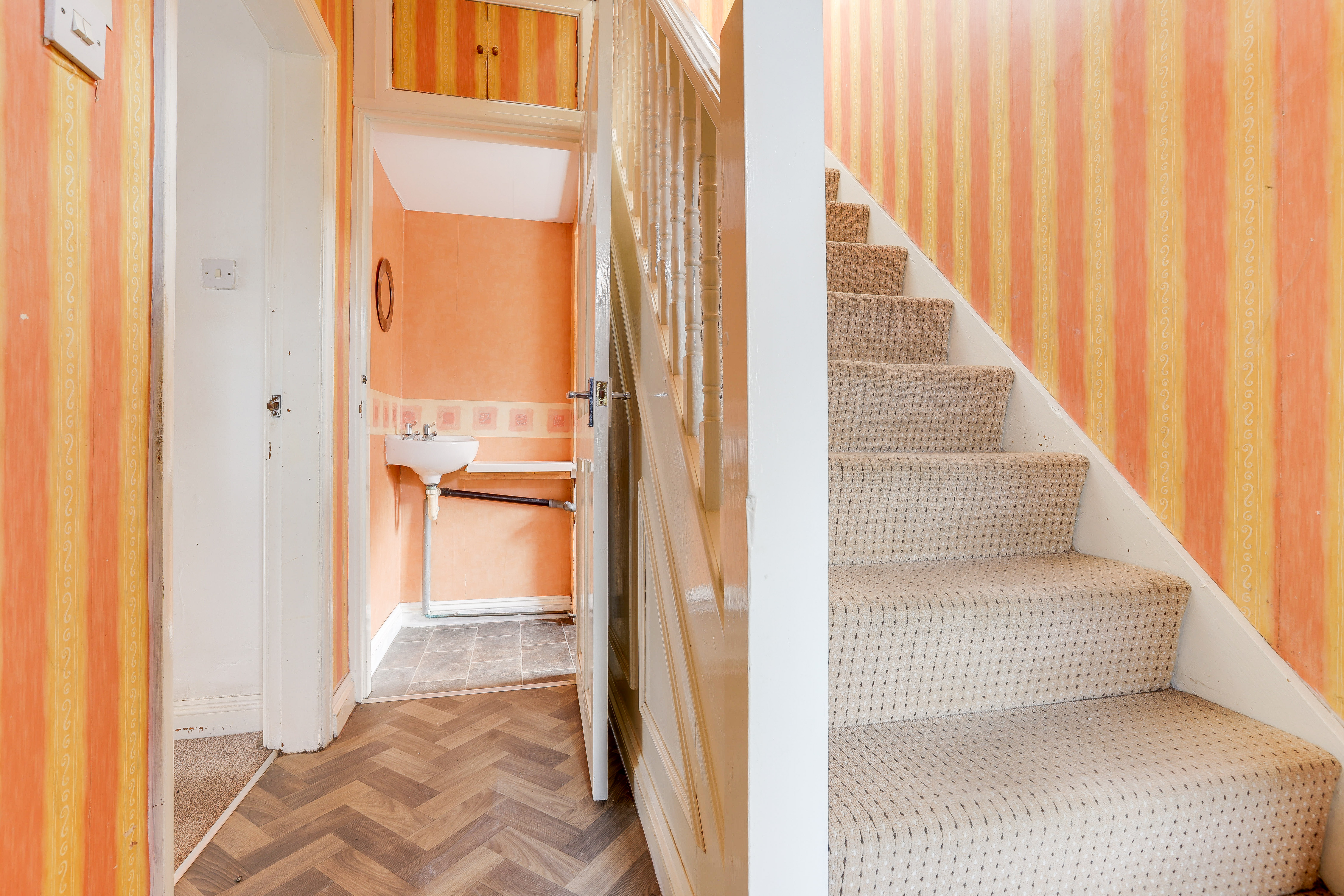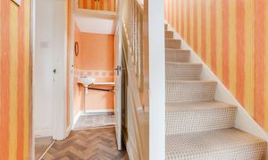 The entrance hall has vinyl flooring with carpeted stairs, ceiling coving and a single door providing access from the accommodation.