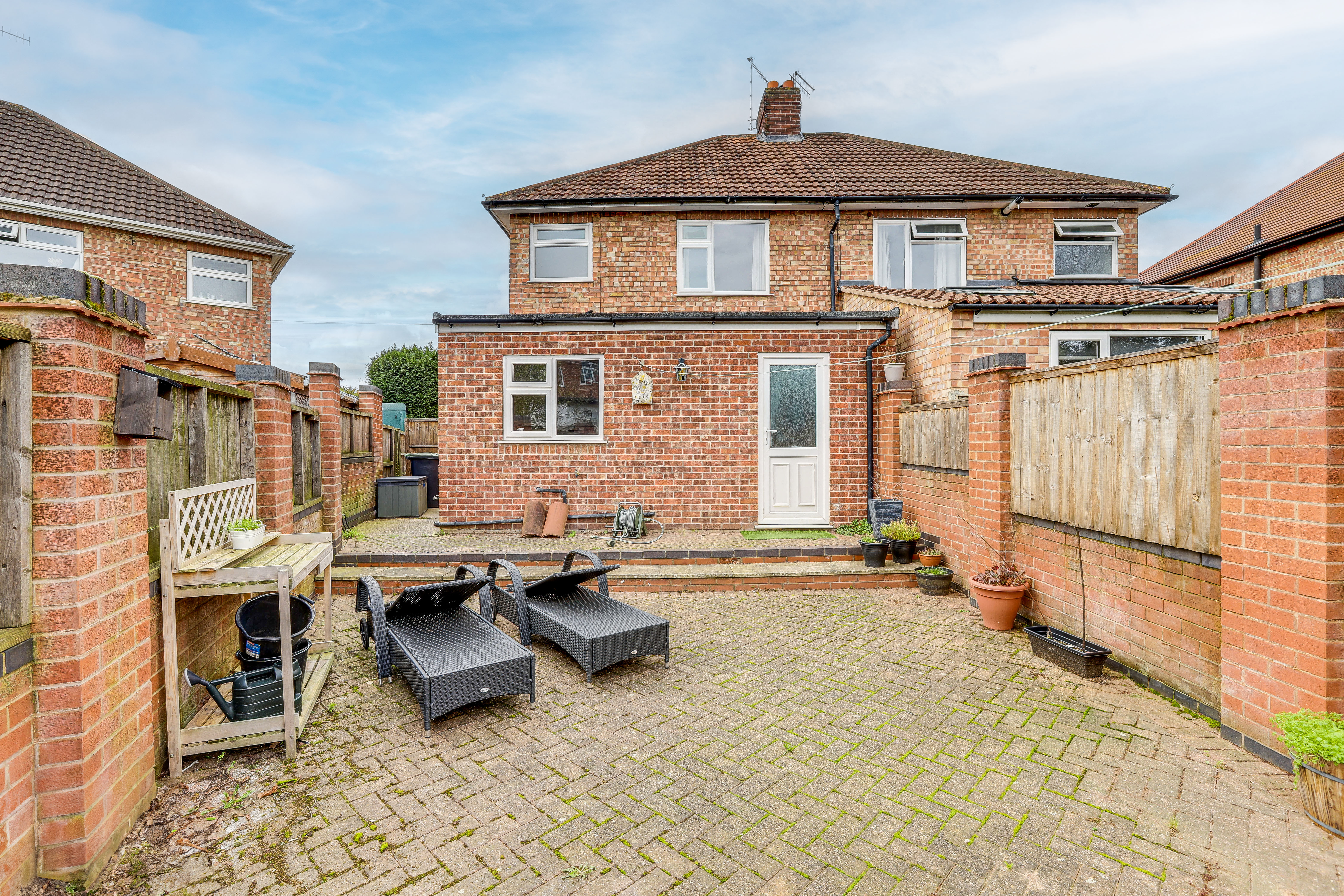To the rear of the property is a low-maintenance garden with a block-paved patio, an artificial lawn, brick-wall and fence panel boundaries.