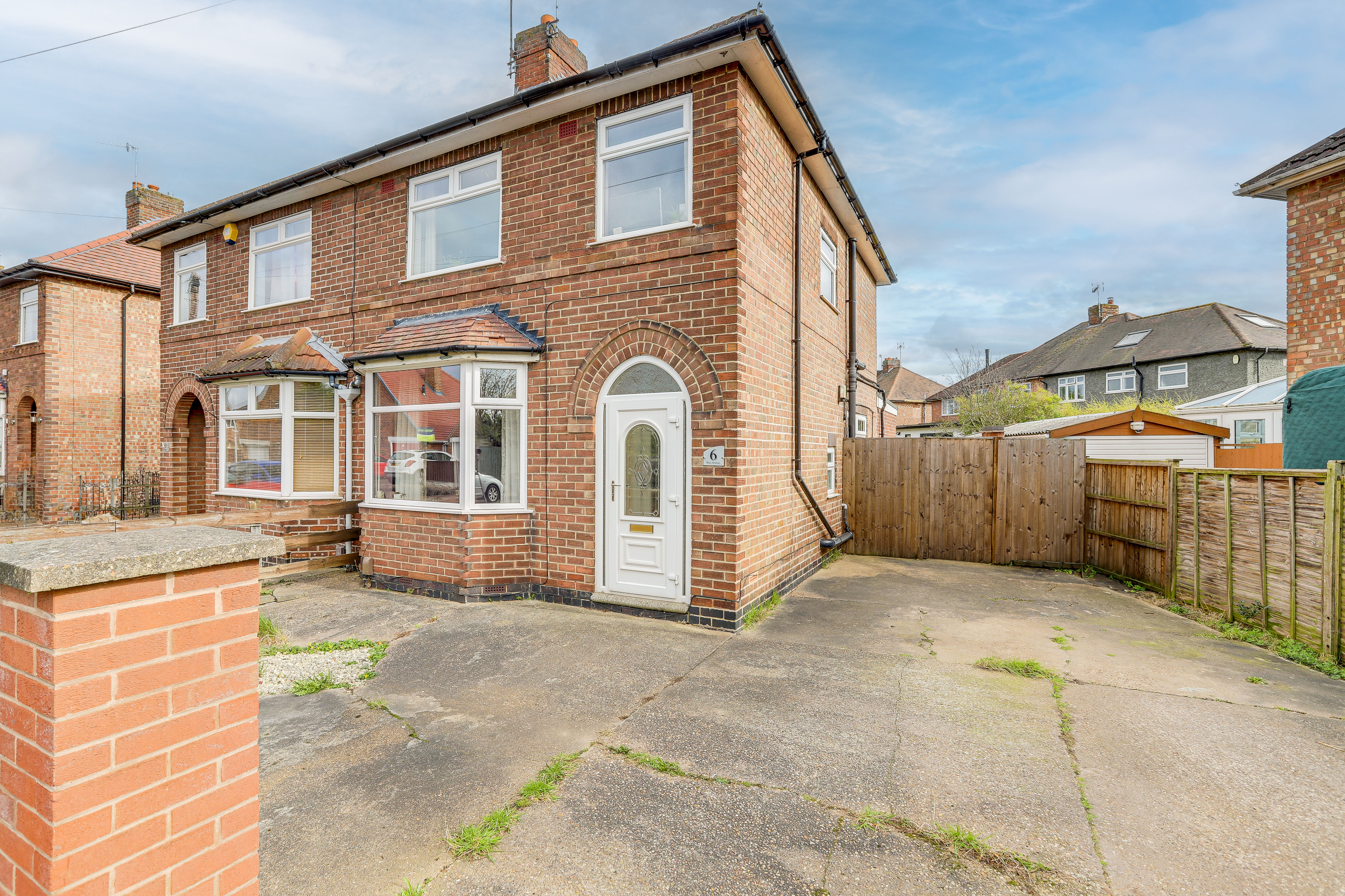 To the front of the property is a driveway providing off-road parking and gated access to the rear garden.