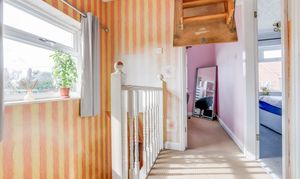 The landing has carpeted flooring, ceiling coving, a UPVC double-glazed window to the side elevation, access to the second floor via a dropdown ladder and access to the first floor accommodation.
