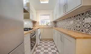 The property features two spacious reception rooms, perfect for both relaxing and entertaining, along with an extended, refitted kitchen complete with a skylight that fills the space with natural light. Upstairs, there are two well-proportioned bedrooms and a sleek, refitted bathroom. To the rear, a courtyard-style garden provides a low-maintenance outdoor space.
