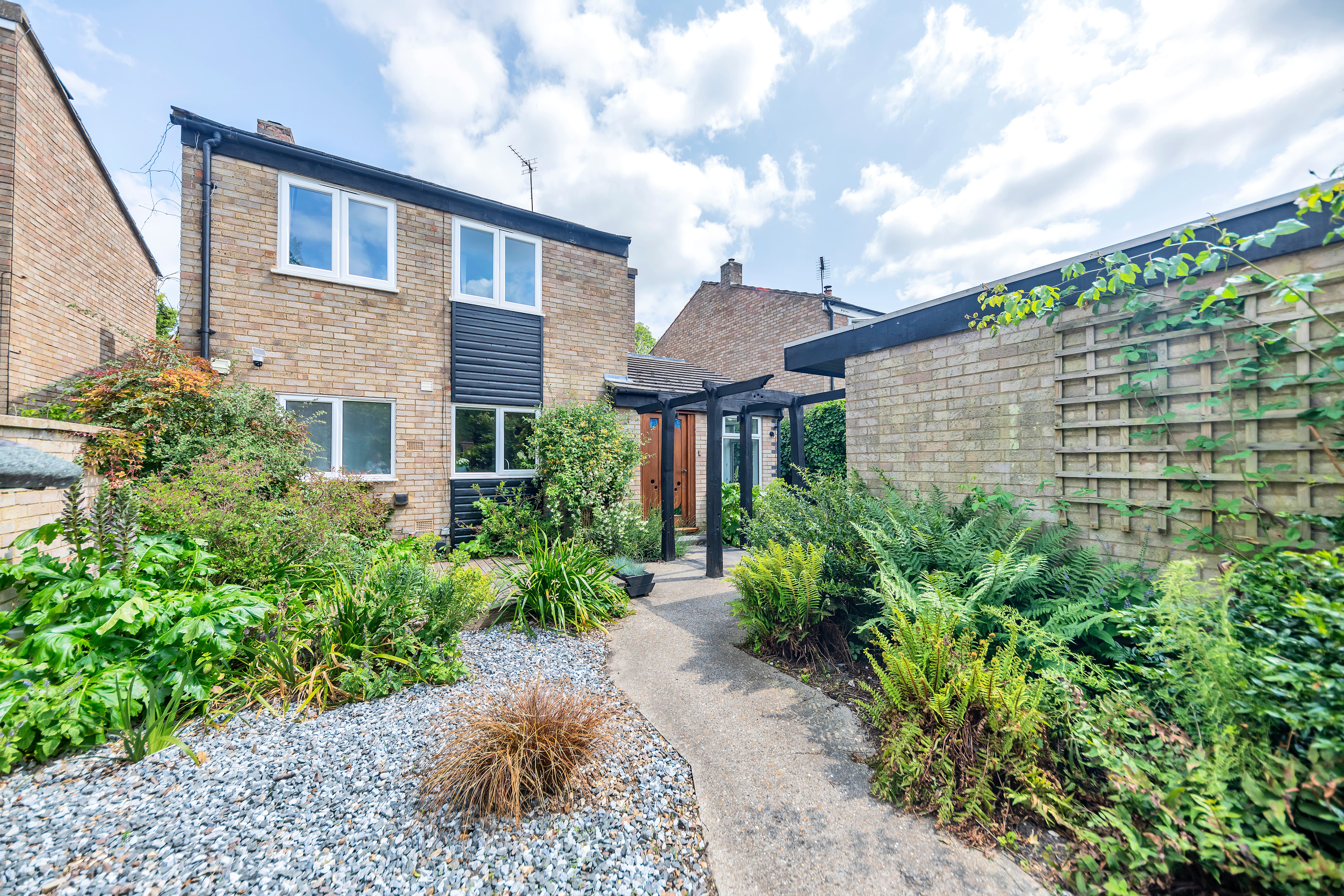 This spacious detached property enjoys a generous and attractive frontage, enclosed by brick walls and fully landscaped, with stunning borders and beds of decorative stones and shrubs, decking, and side access to the rear.