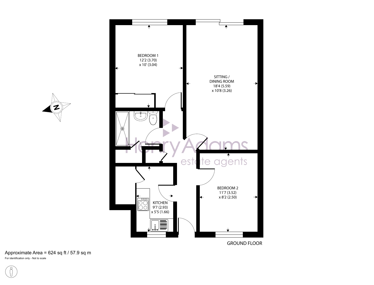 The property benefits from its own private front door, leading into a bright entrance hallway with access to all rooms. The living/dining room is a good-sized space with patio doors opening directly onto the communal garden.