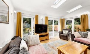 Flowing directly from the dining/family room, the lounge is a truly glorious space, filled with natural light from Velux-style windows in the extended area and triple-aspect windows. Offering direct access to the rear garden with its decked area, this room perfectly combines indoor and outdoor living. Bright and welcoming, it provides a wonderful setting for entertaining as well as relaxed family life.