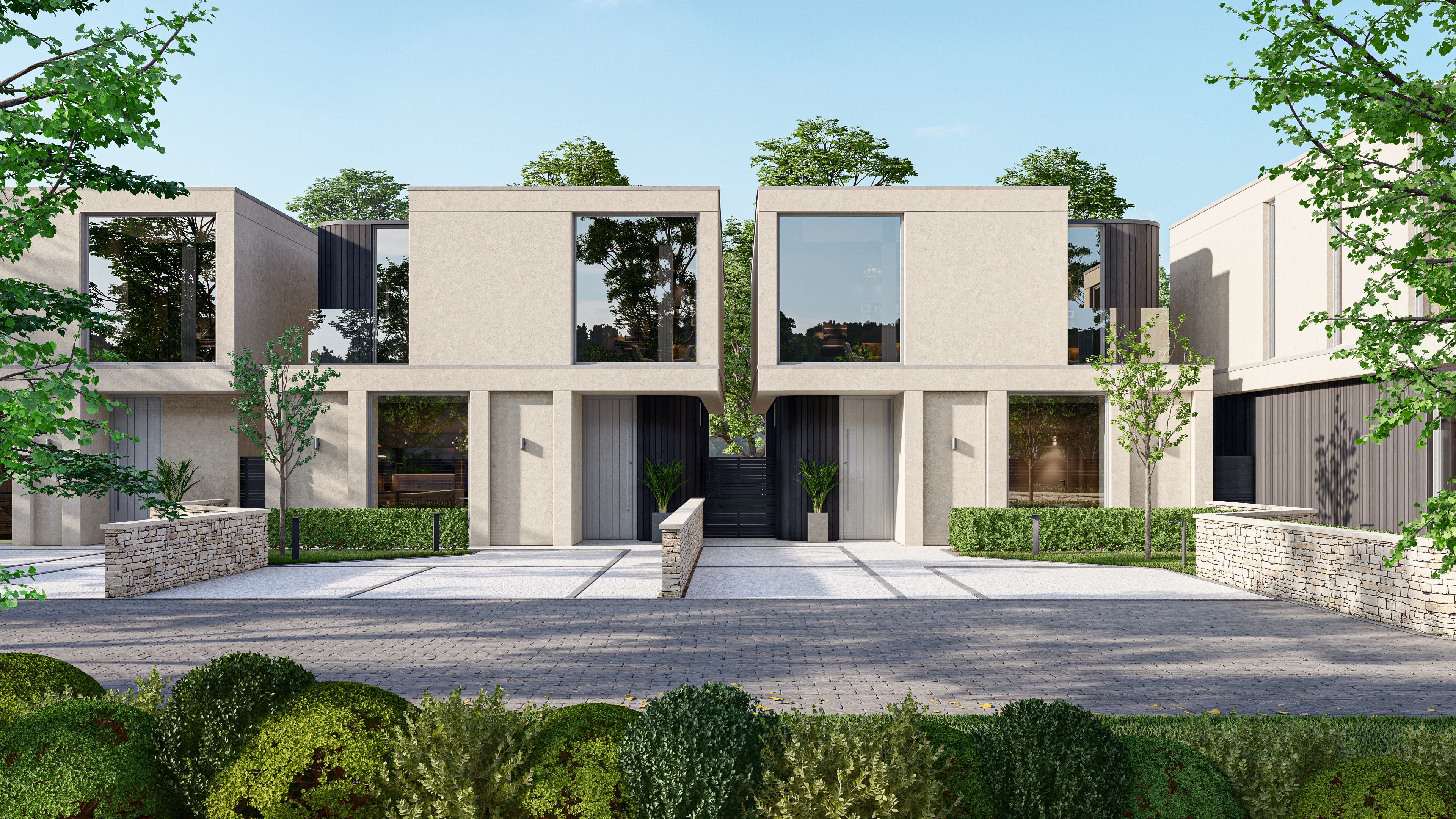 As you arrive at the development, you are greeted by a sweeping driveway through beautifully landscaped grounds leading to your residence. Sleek architectural designs have created imposing facades featuring large glazed openings to flood the properties with natural light. Convenient driveway parking for two vehicles is standard at all properties. As you enter the home, you will find an impressive inventory of features and technology incorporated as standard. From a state-of-the-art smart home automation system to energy-efficient heating systems, enabling you to control the climate, lighting, security, and entertainment with ease from the comfort of your home, or anywhere in the world.