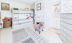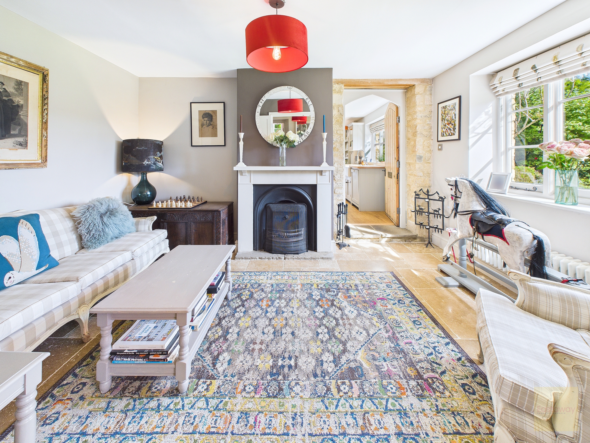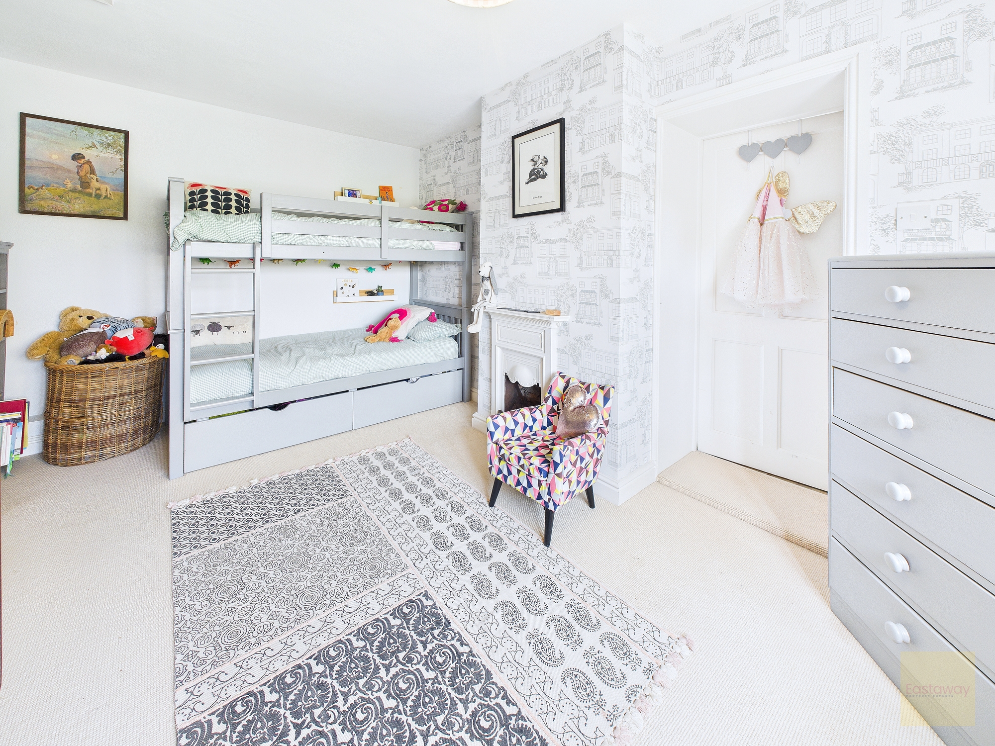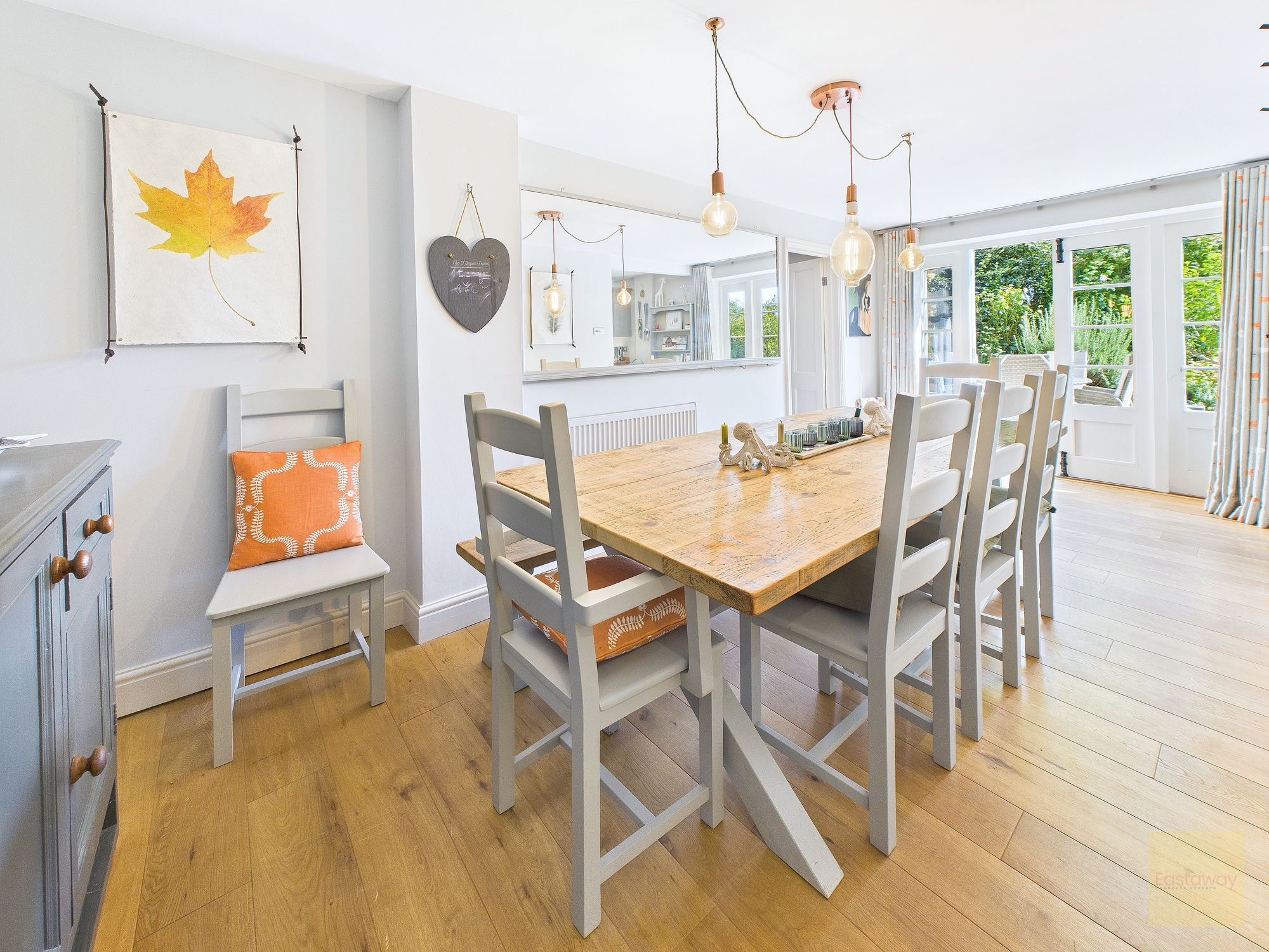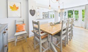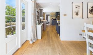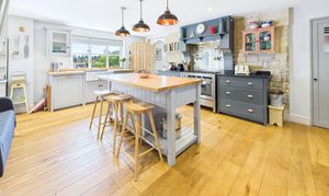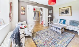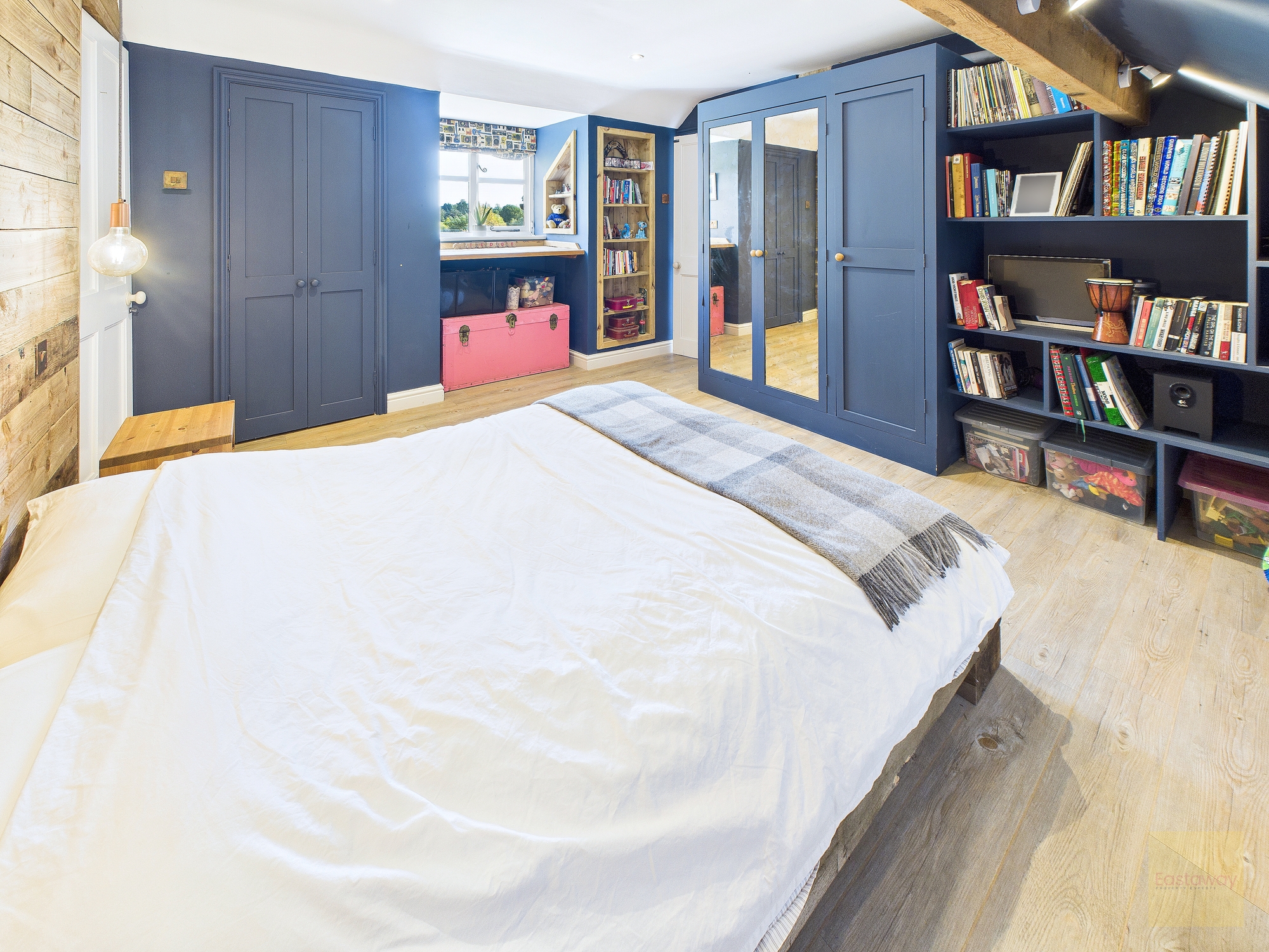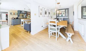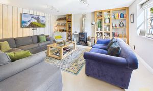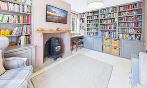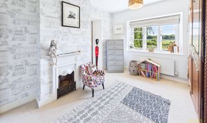 The kitchen is the true heart of the home. Bright, sociable, and overlooking the meadow, it is the kind of space where family life naturally gathers. From here the house flows easily into a choice of living areas. A cosy snug with an open fire is made for winter evenings, while a larger living room centred around a wood burning stove is perfect for unwinding or entertaining. Every corner has its own atmosphere, but all share that same sense of warmth and comfort.