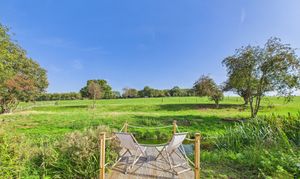 Outside the gardens and grounds really shine. Beautifully landscaped yet easy to maintain, they offer little moments of joy everywhere you turn. An orchard with apple trees, a summerhouse, a vegetable patch, hidden paths, patios and seating areas that invite you to pause for morning coffee or evening drinks. Beyond the garden lies the meadow, currently used for occasional grazing, which leads you down to the river and a raised waterside deck, the ultimate countryside escape.