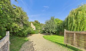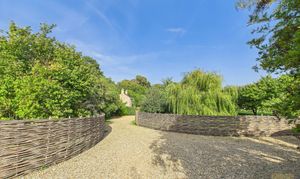 There is a wonderful sense of privacy here. Tucked away on the edge of Ketton, one of the most sought-after Rutland villages, the home feels completely secluded yet never cut off. A sweeping driveway lined with willow fencing leads you in, with plenty of space for cars and the unmistakable feeling that you are arriving somewhere special.