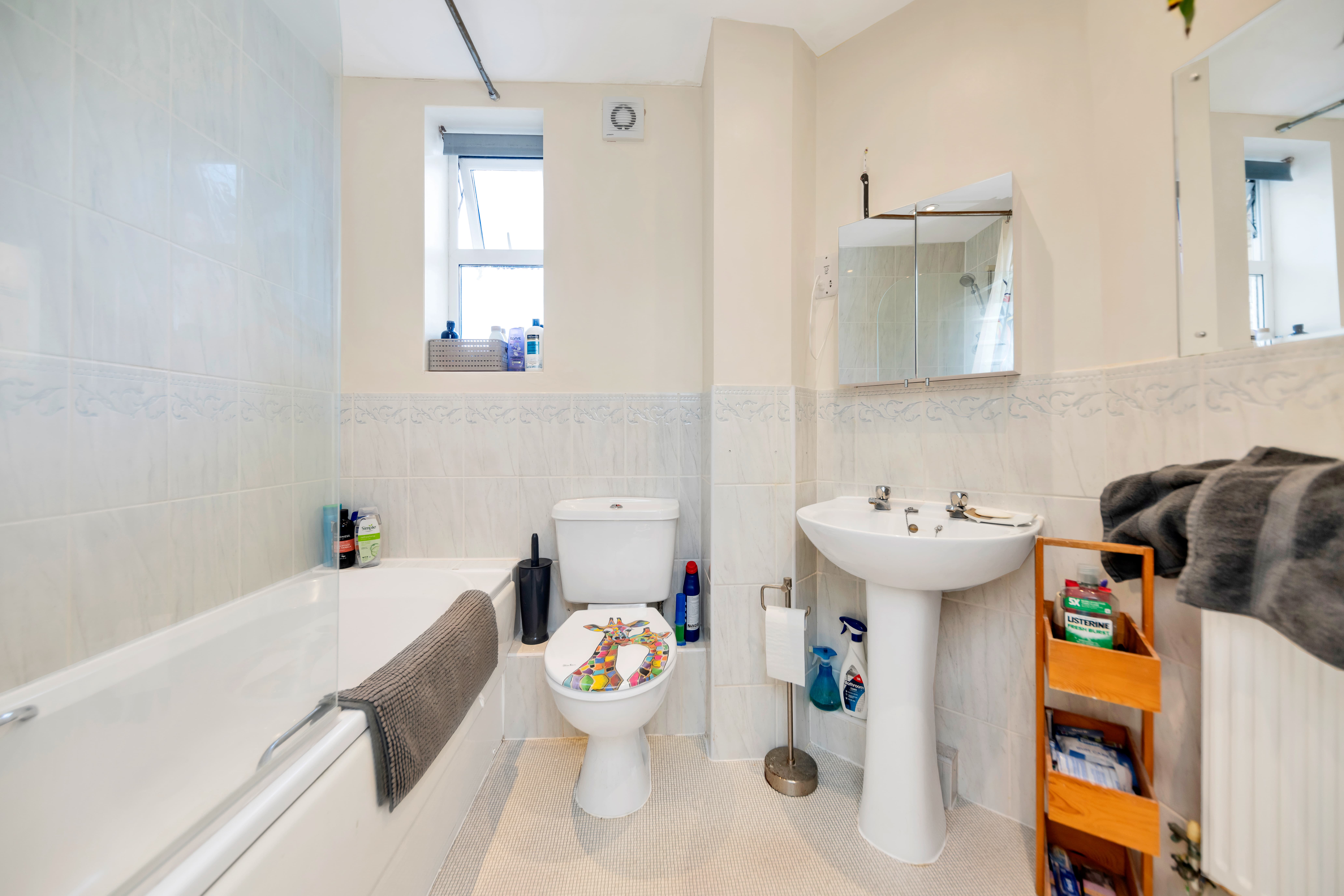 Through to the sleeping quarters, this well-presented home continues to offer generous accommodation, with 2 well-proportioned bedrooms, integrated storage to the primary, and a bathroom comprising a bath with a shower overhead, a WC and a hand wash basin.