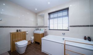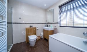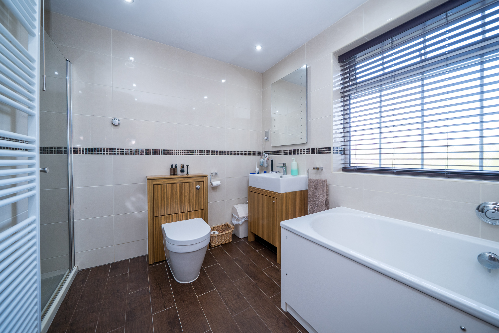 Upstairs, the master bedroom benefits from a dedicated dressing area, offering a touch of luxury and plenty of storage, while two further well proportioned bedrooms provide comfortable accommodation for family members or guests. The modern family bathroom on the upper floor is finished to a high standard, featuring quality fixtures and fittings.