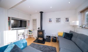 Upon entering, you are greeted by a welcoming entrance hallway that leads to a practical utility room and a convenient cloakroom, providing ample storage and functionality. The forward facing snug lounge, featuring a charming fireplace, offers a cosy retreat perfect for relaxing evenings. At the heart of the home is a large family room that seamlessly opens into the conservatory and the stylish fitted kitchen, creating a bright and airy space for entertaining or spending quality time together. The kitchen is equipped with built in Neff appliances, ensuring a sleek and contemporary finish, and is thoughtfully designed for both every-day use and hosting guests.