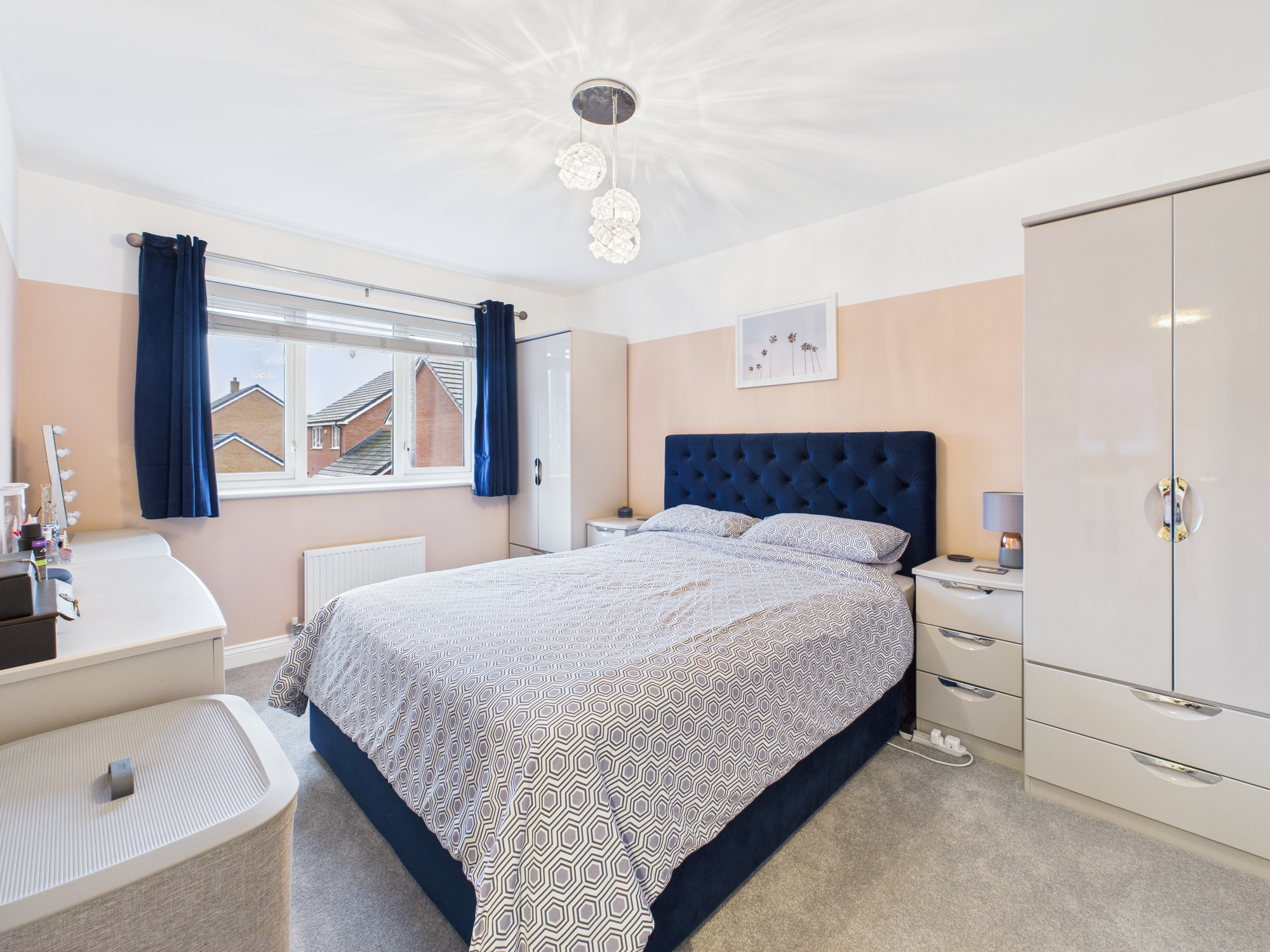 Situated in a cul-de-sac location, this detached home was constructed in 2017. Offering an entrance hall, sitting room with box window, kitchen/dining room, utility room and a cloakroom all to the ground floor, whilst upstairs there are four bedrooms (three doubles, one single), the master en-suite re-fitted by the current owners and finally a family bathroom. Outside, the rear garden is laid with lawn and a patio with a side gate for access. The property further benefits from a detached single garage with the a block paved driveway in front.