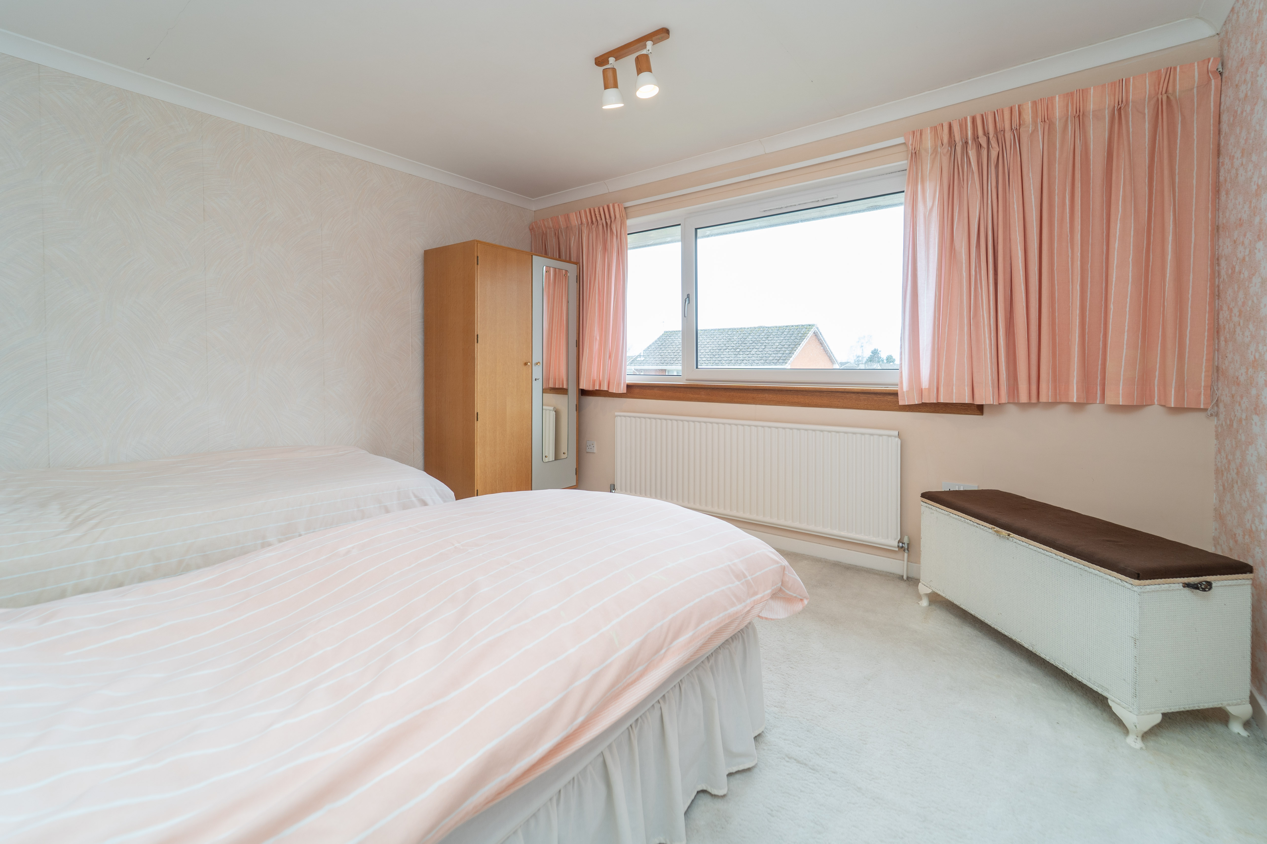 This lovely room has been finished with neutral painted wand papered walls, and carpet to the floor. The window to the front of the property allows in natural light and this is further complemented by a ceiling light. Power points and a radiator are also provided.