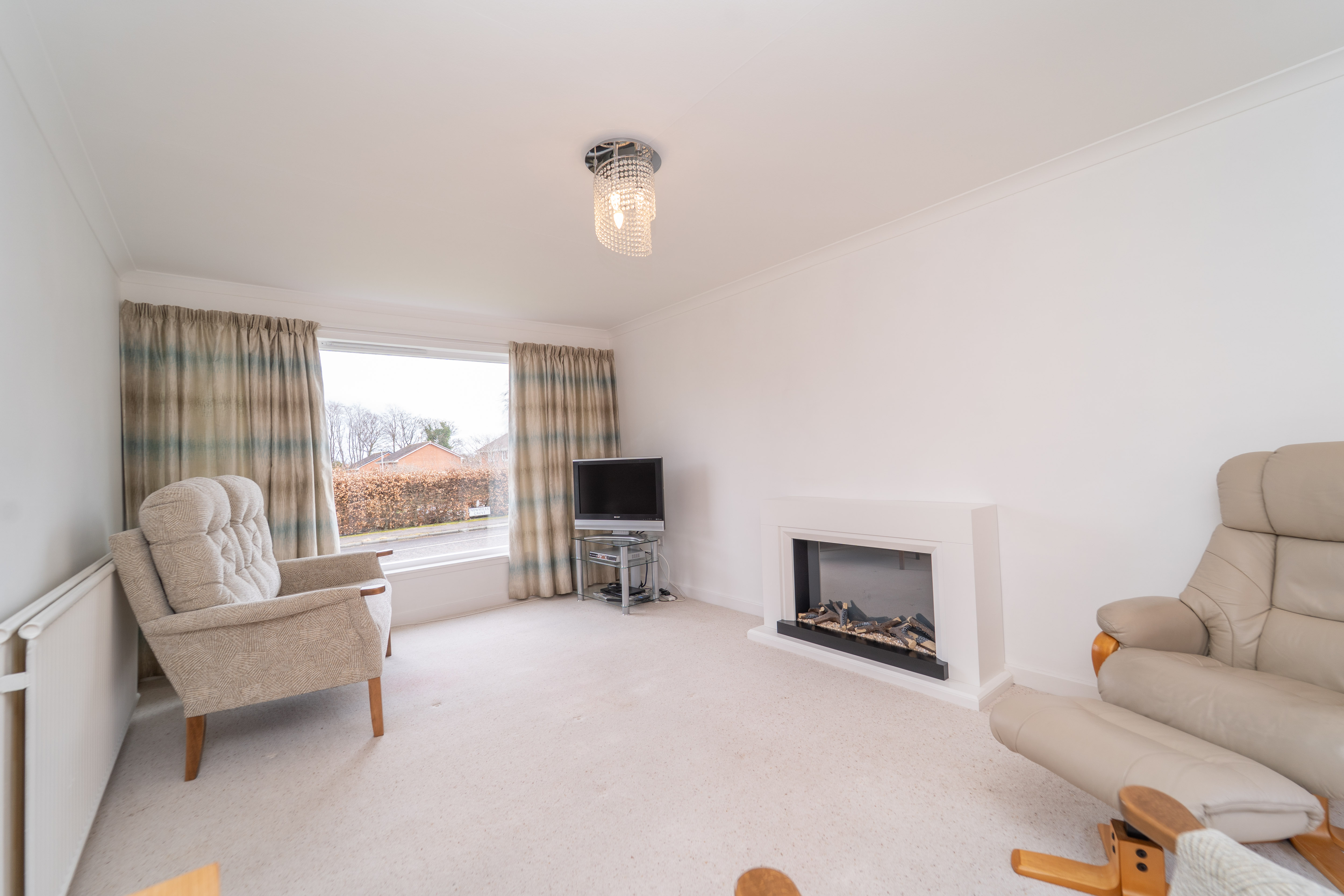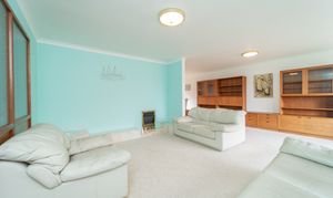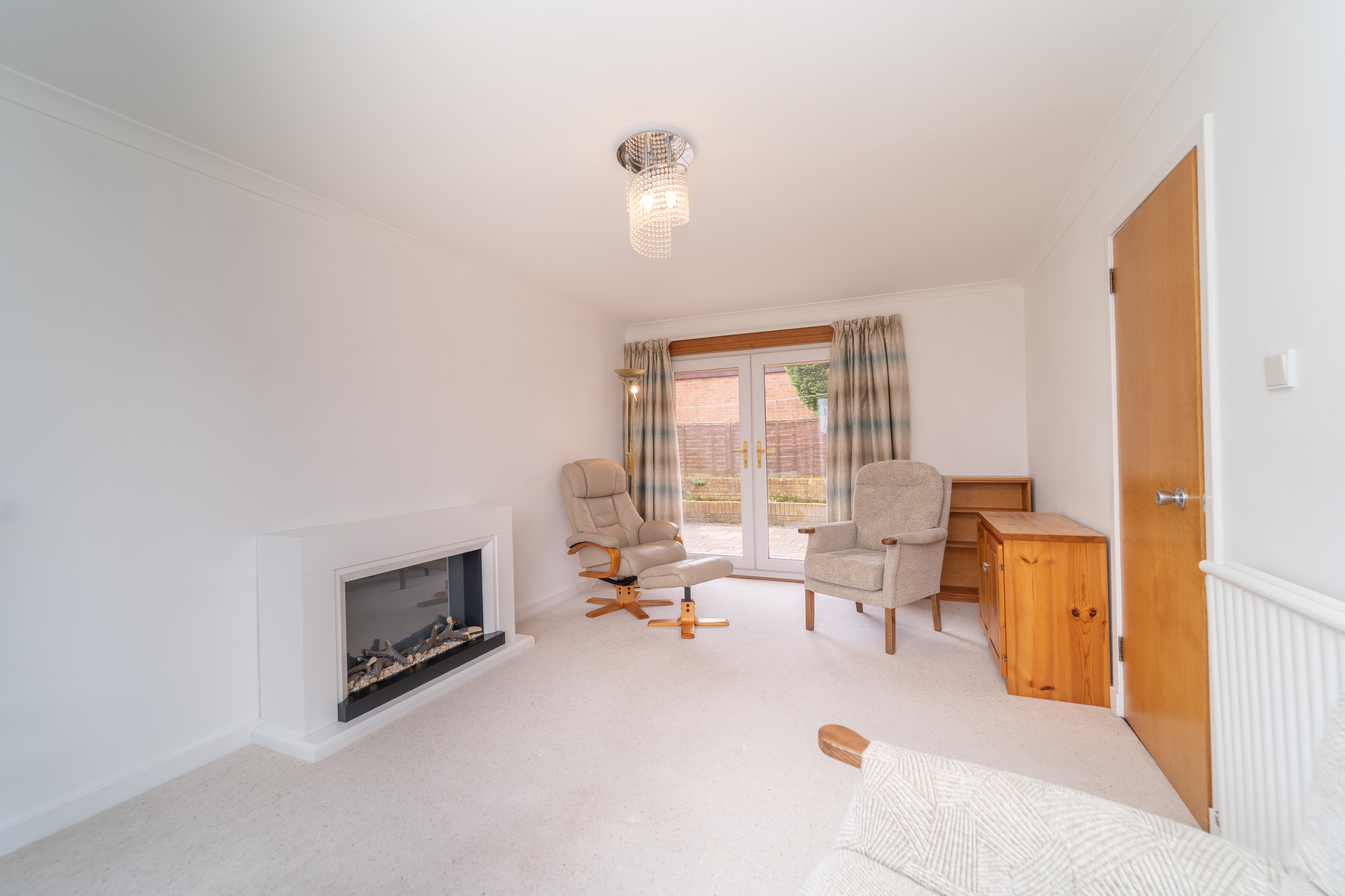 This versatile additional living space offers endless possibilities, whether as a lounge, home office, or even a fifth bedroom. The fresh white painted walls and plush carpeted flooring create an inviting and cosy ambiance. A front facing window and rear French doors allow natural light to flood the room, enhancing the bright and airy feel. An electric fire and surround create a central focal point in the room. Practical features like a ceiling light, radiator, and strategically placed power points add both comfort and convenience to this adaptable space.