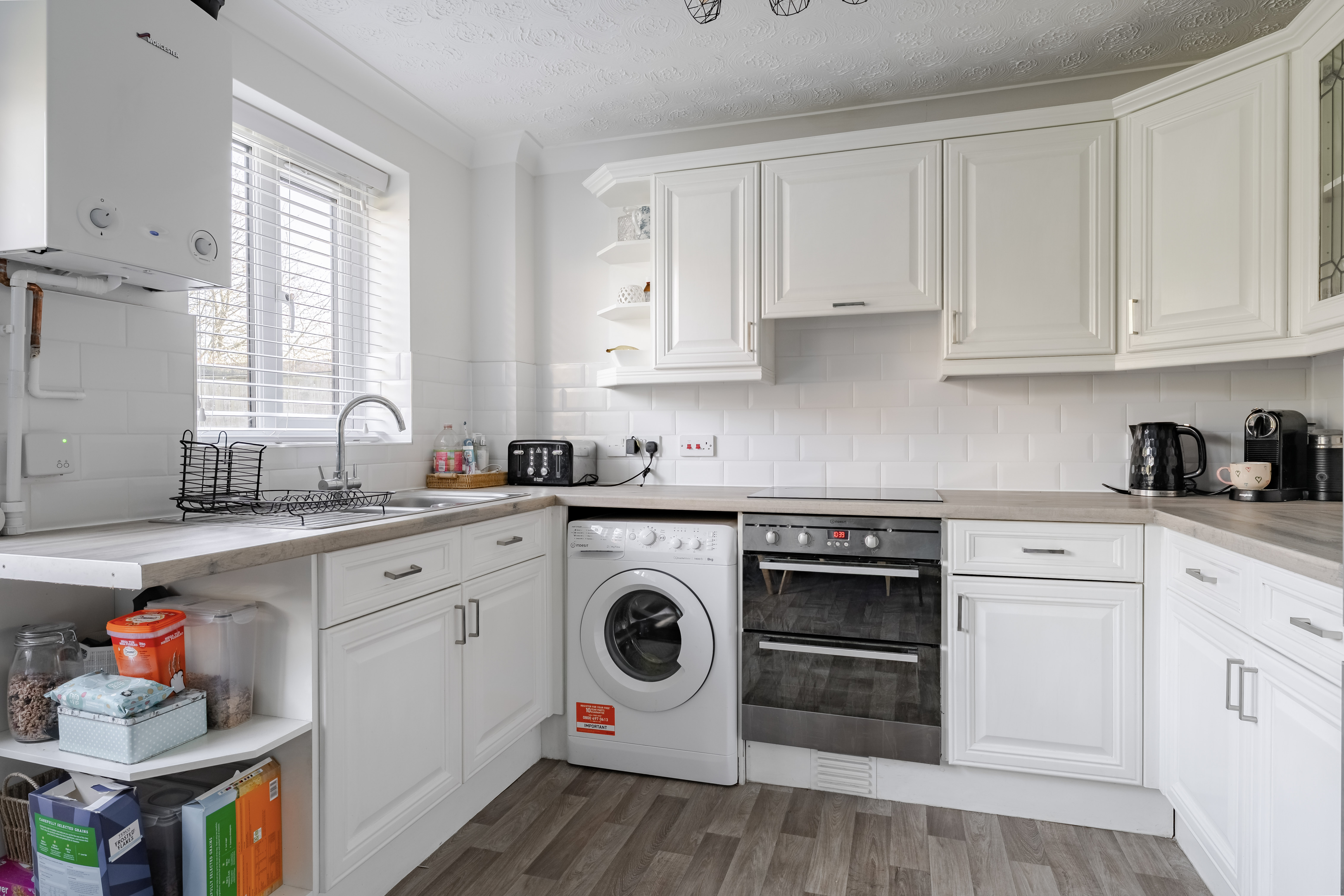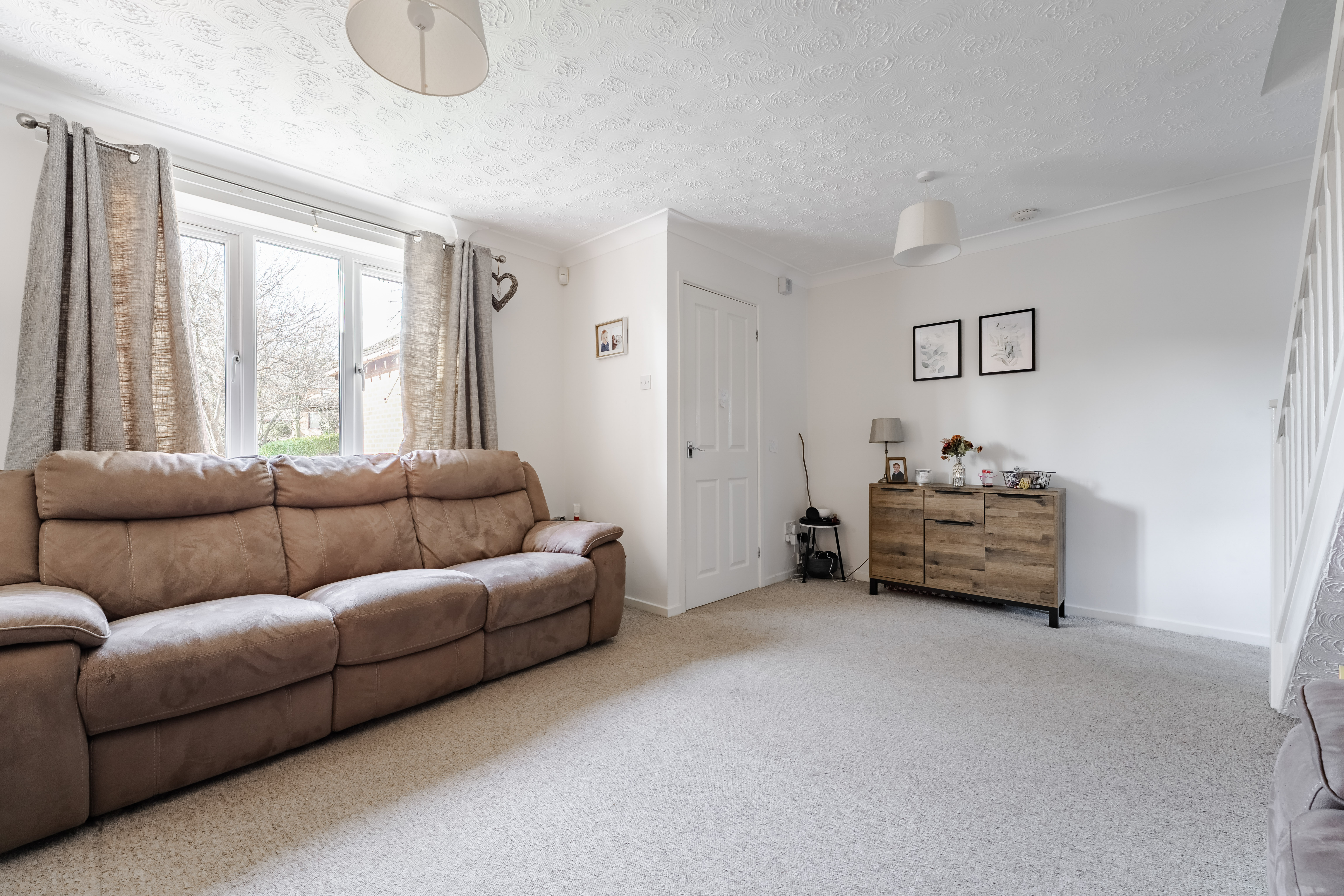 The sitting room is a generous and comfortable space, complete with a front-facing window that allows natural light to pour in. Recently redecorated and laid with carpet underfoot, it feels fresh, bright and ready to move straight into. The staircase ascends neatly from here to the first floor, while the layout allows for versatile furniture placement to suit modern family living. The property also benefits from a newly installed boiler, adding further efficiency and peace of mind.