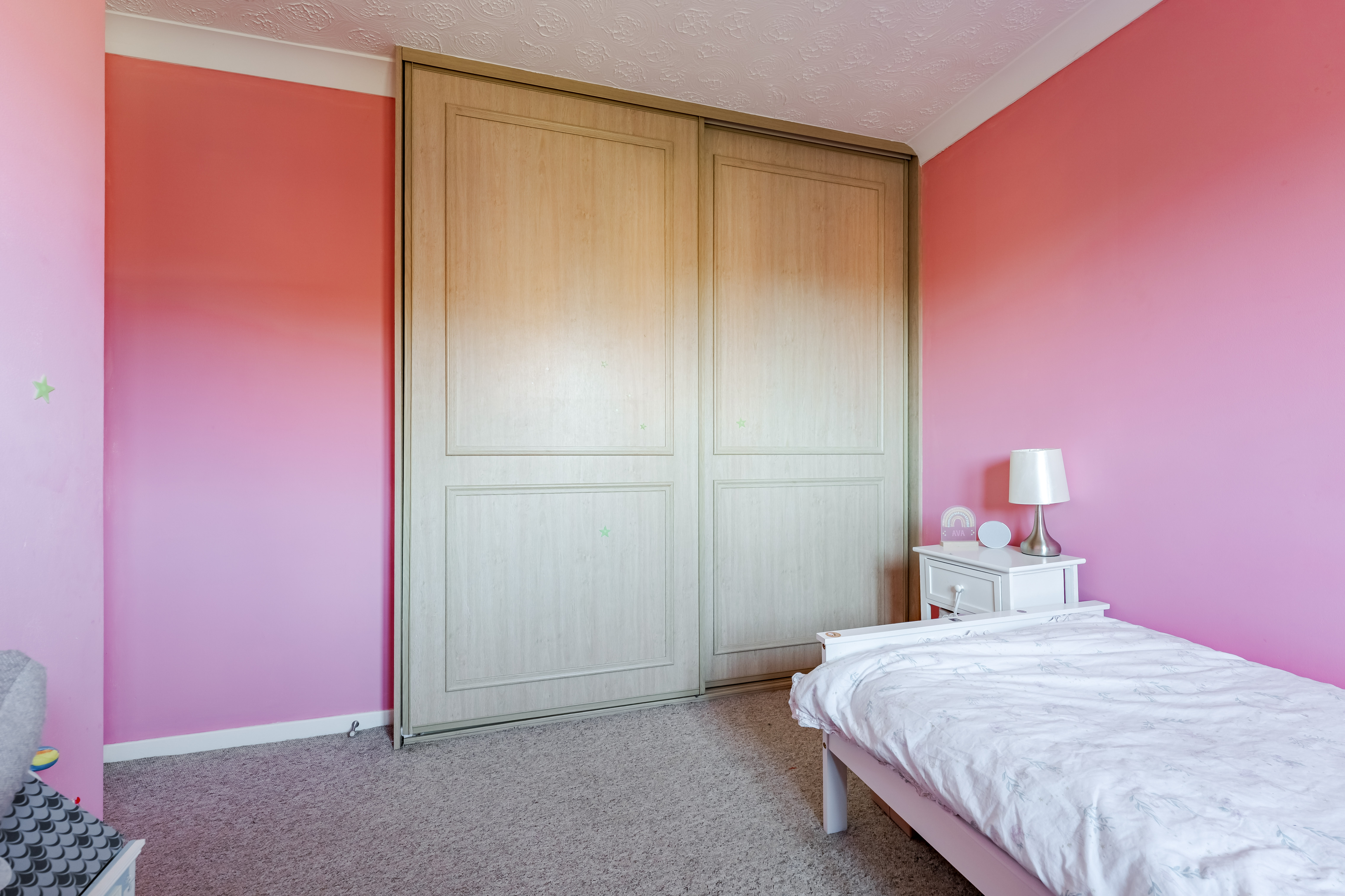 Upstairs, three well-sized bedrooms offer comfortable accommodation for families, guests or those working from home. Two of the bedrooms benefit from built-in wardrobes, providing practical storage solutions without compromising on space. The rooms are served by a modern bathroom, completing the first-floor layout.