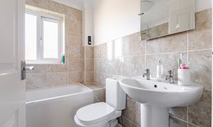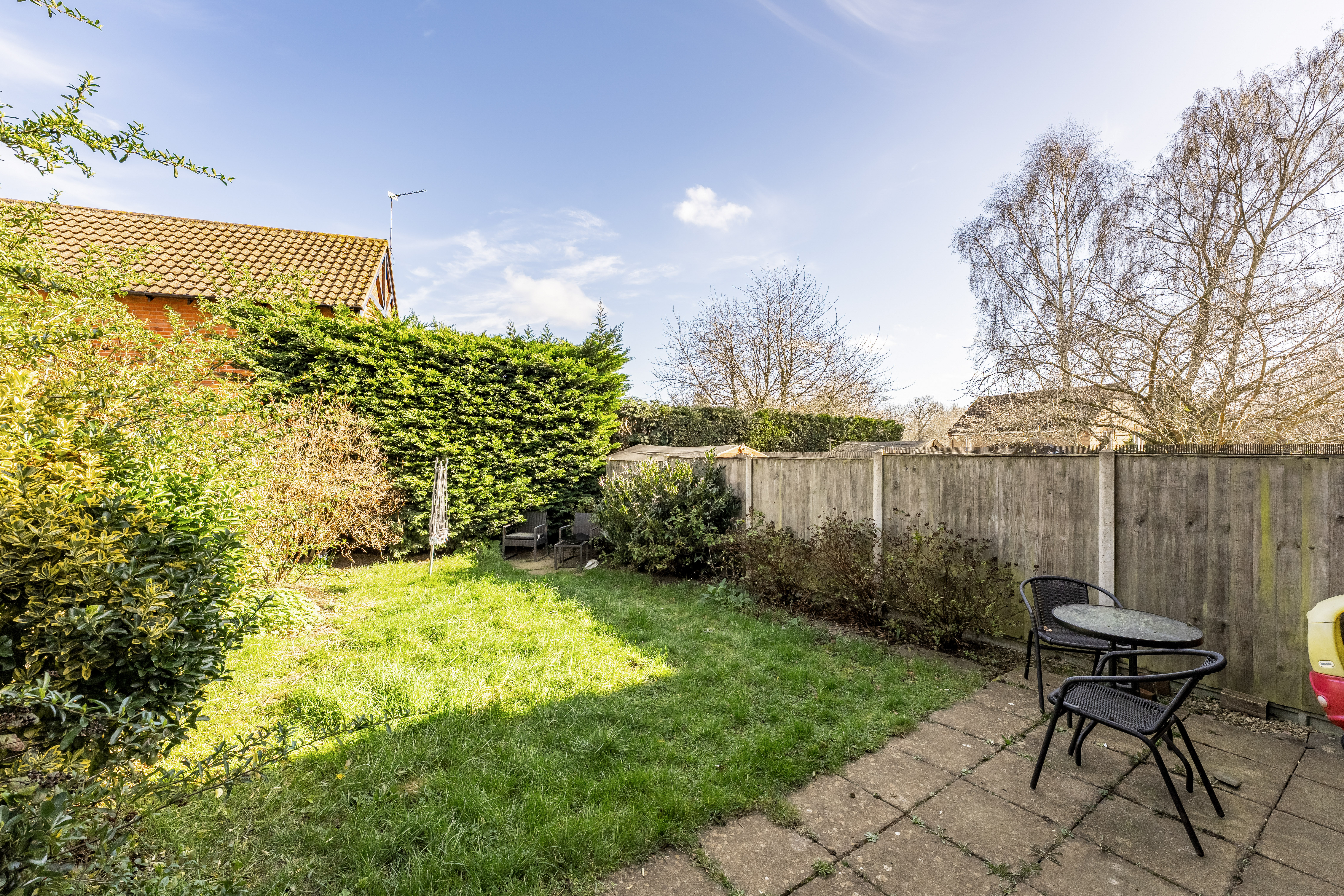 Outside, the rear garden is a particularly appealing feature, a great-sized plot that strikes the perfect balance between manageable and enjoyable. With a patio area for seating and entertaining, a lawn for children or pets to play, and enclosed fencing complemented by greenery, it offers privacy and a pleasant setting to unwind.