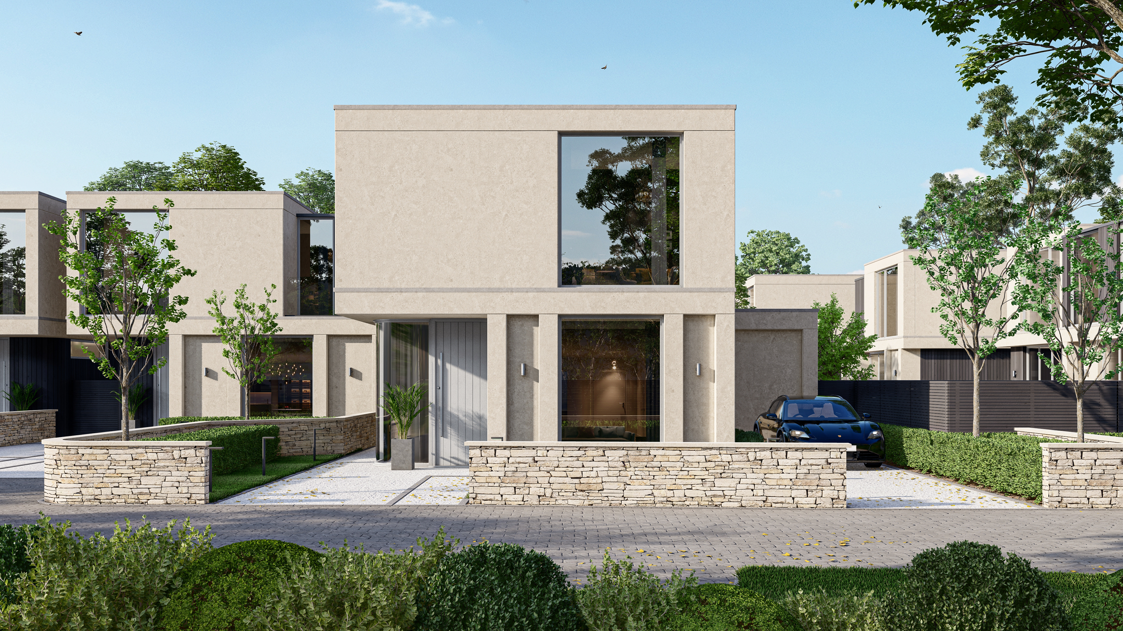 As you arrive at the development, you are greeted by a sweeping driveway through beautifully landscaped grounds leading to your residence. Sleek architectural designs have created imposing facades featuring large glazed openings to flood the properties with natural light. Convenient driveway parking for two vehicles is standard at all properties. As you enter the home, you will find an impressive inventory of features and technology incorporated as standard. From a state-of-the-art smart home automation system to energy-efficient heating systems, enabling you to control the climate, lighting, security, and entertainment with ease from the comfort of your home, or anywhere in the world.