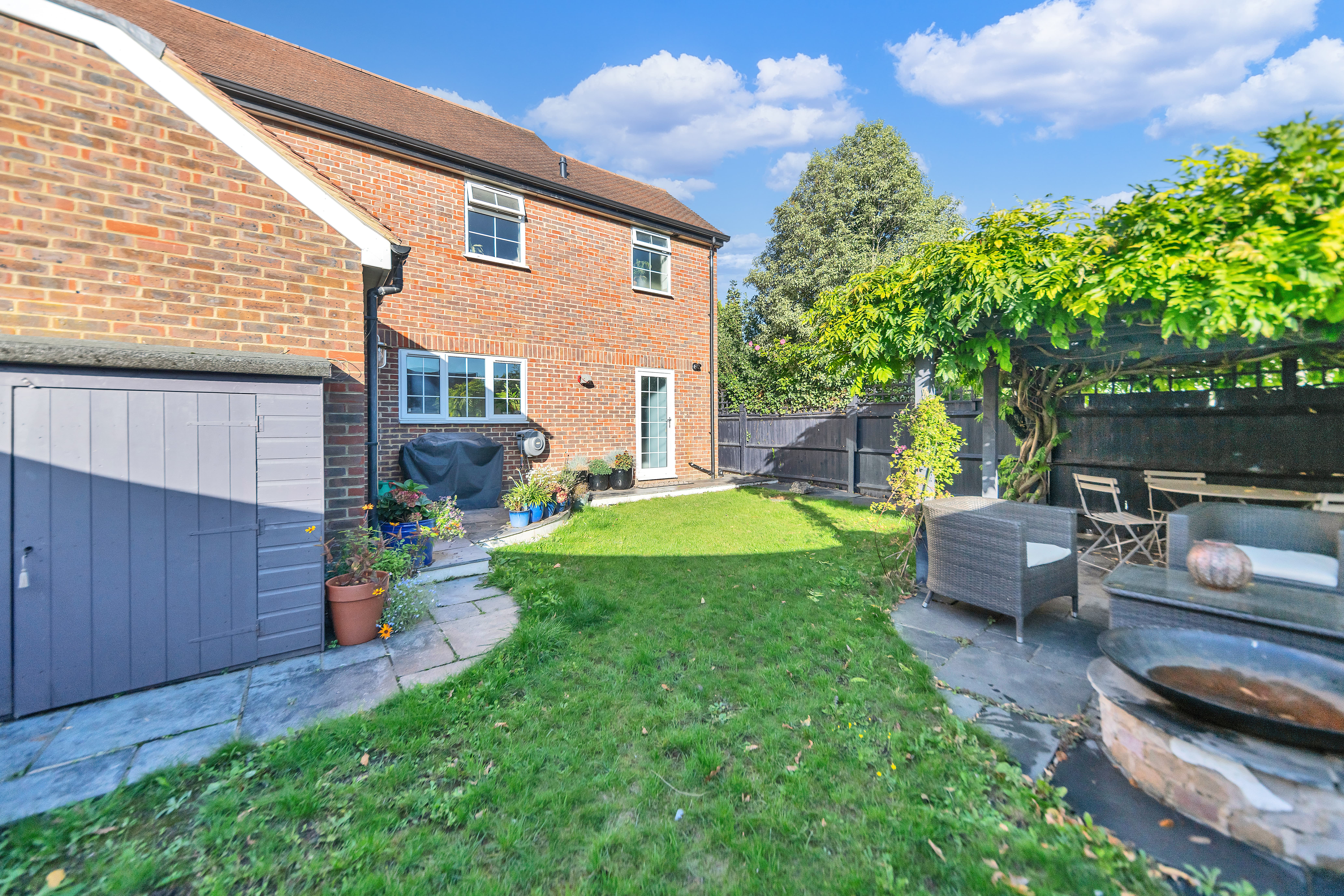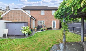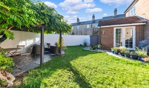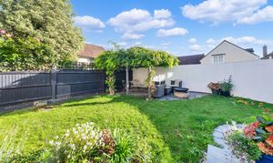 Outside, to the rear, the landscaped garden is a very good size, fully enclosed by fencing and brick walls and offering a well-maintained space to sit and relax during the sunny weather. It is laid mainly to lawn, with paved patio and a beautiful pergola covered with climbing plants, providing space for garden furniture, eating al fresco and entertaining guests. There is plenty of space for potted plants, access to a shed, and scope for new owners to put their own touches on things.