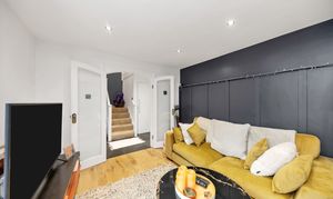 This well-presented and spacious property enjoys a pleasant and tidy frontage, plenty of space for potted plants, a lovely overhanging tiled porch canopy, side access to the rear, and a generous driveway. Upon stepping inside, the entrance hallway is bright, wide and beautifully decorated, alluding to the high standard seen throughout. It enjoys tiled flooring, room for furniture, inset lighting, stairs to the first floor and access through to the downstairs living space, including a cloakroom WC.