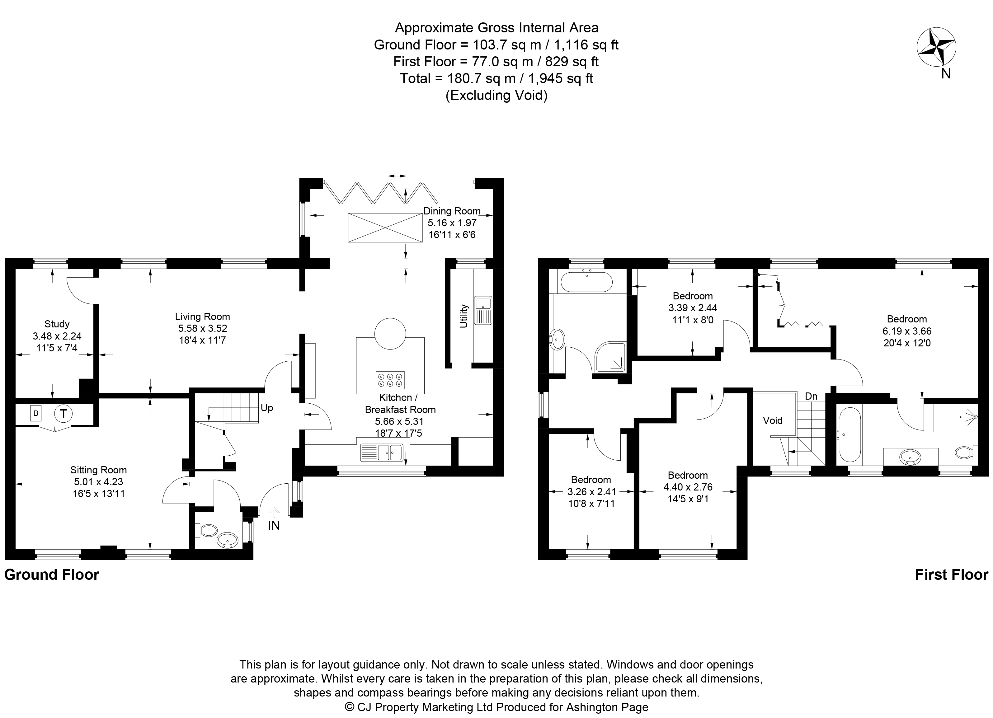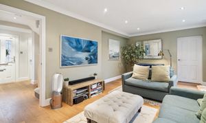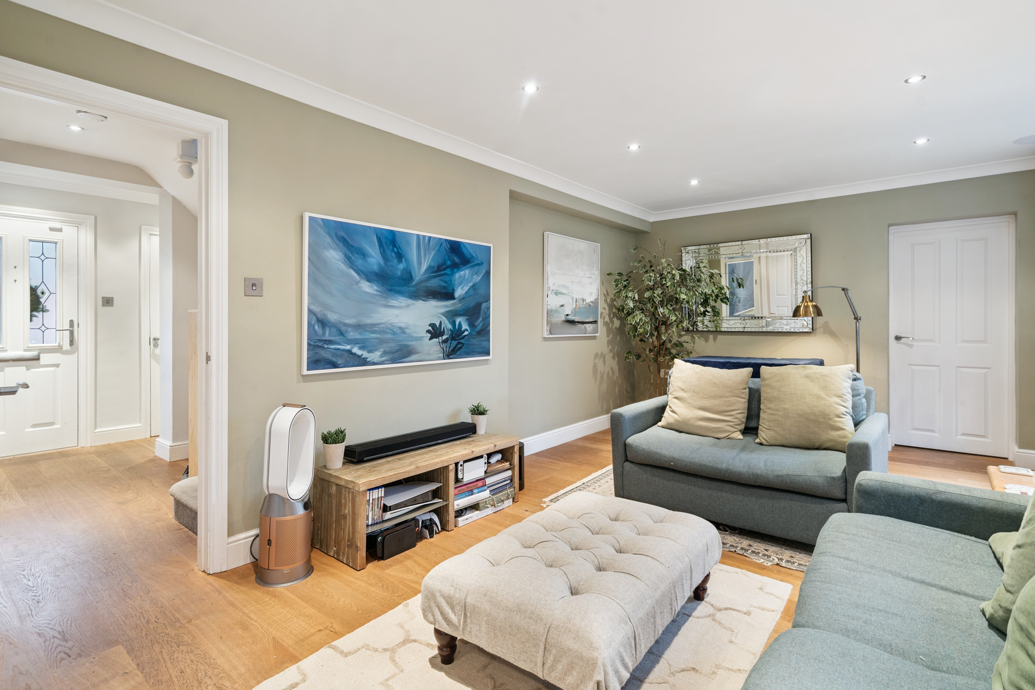 The adjoining living room is a spacious dual-aspect room, offering an excellent area for relaxation. A door from this room leads through to a study, ideal for home working.