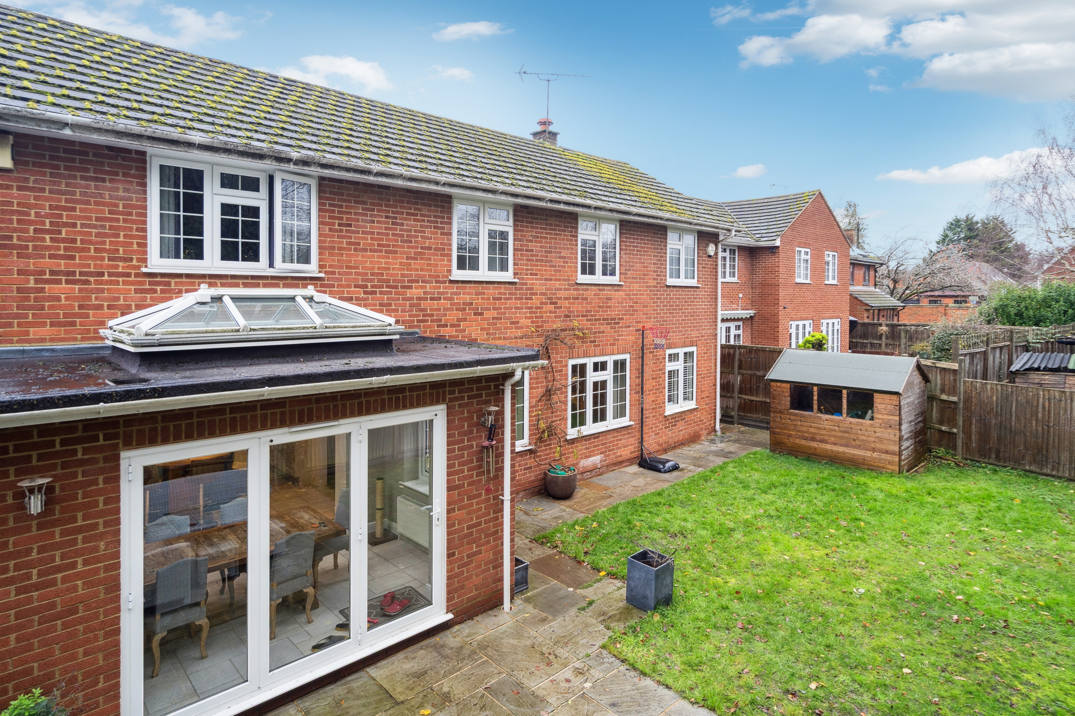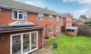 Outside, the rear garden features a generous patio ideal for outdoor entertaining, with the remainder laid mainly to lawn and bordered by panel fencing. There is a storage shed and side access leading to the front of the property.