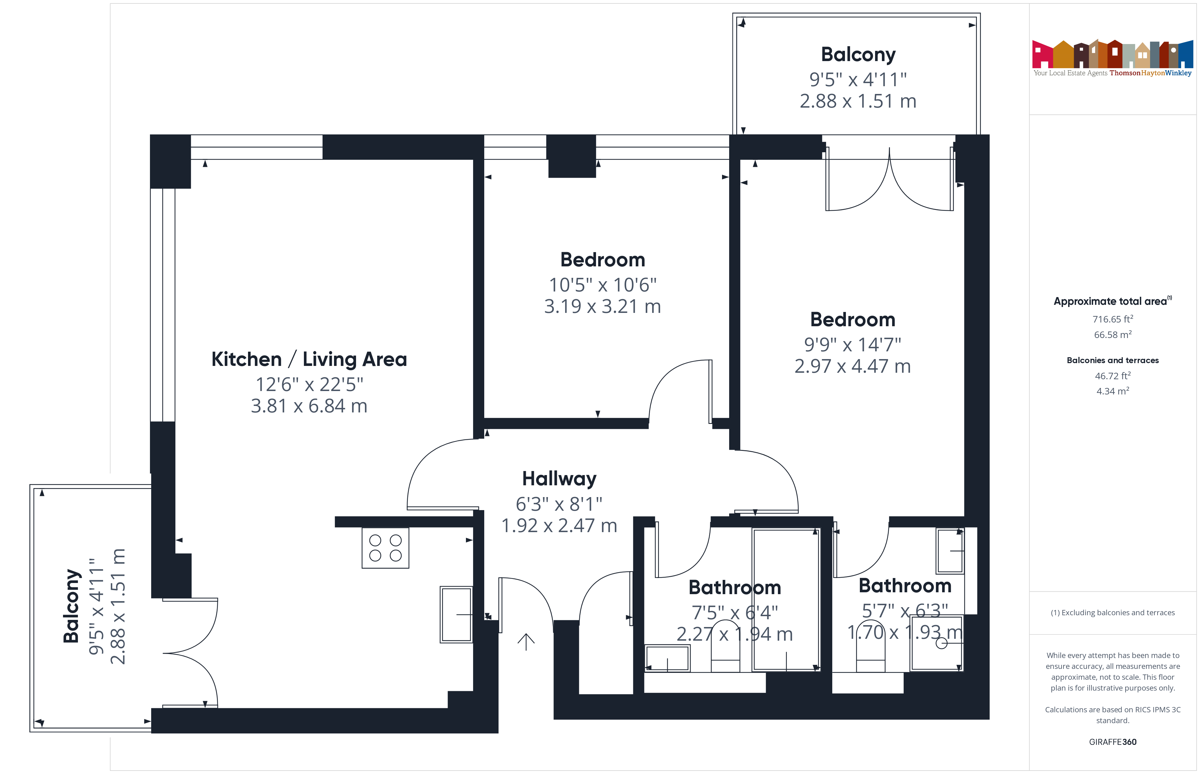 - Two double bedrooms with one having an en-suite bathroom and access to a balcony