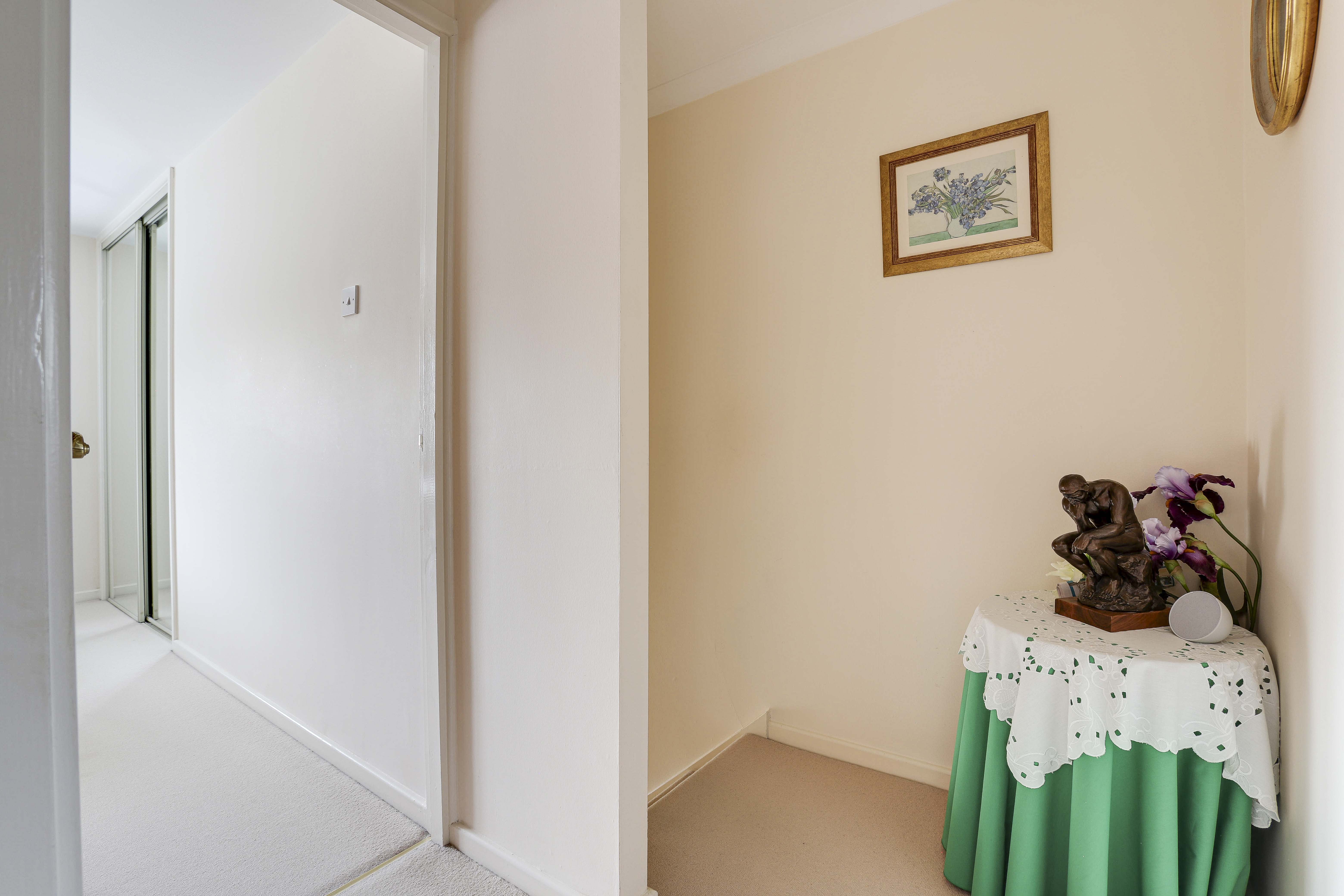 The landing has carpeted flooring, a built-in cupboard, recessed spotlights, coving, access into the loft and provides access to the first floor accommodation.