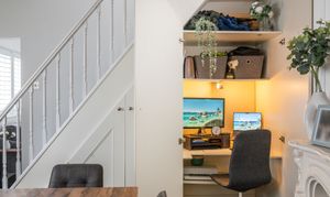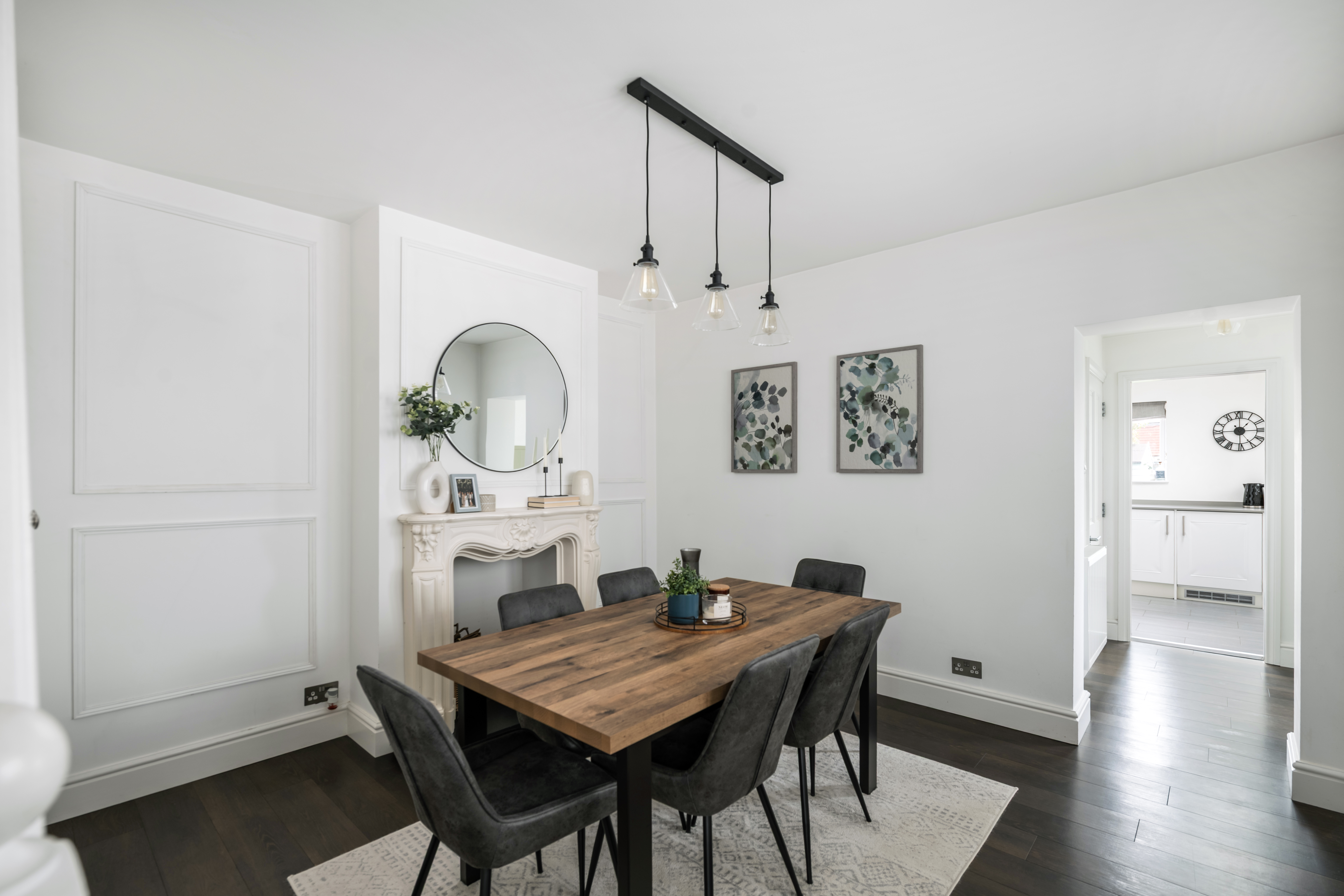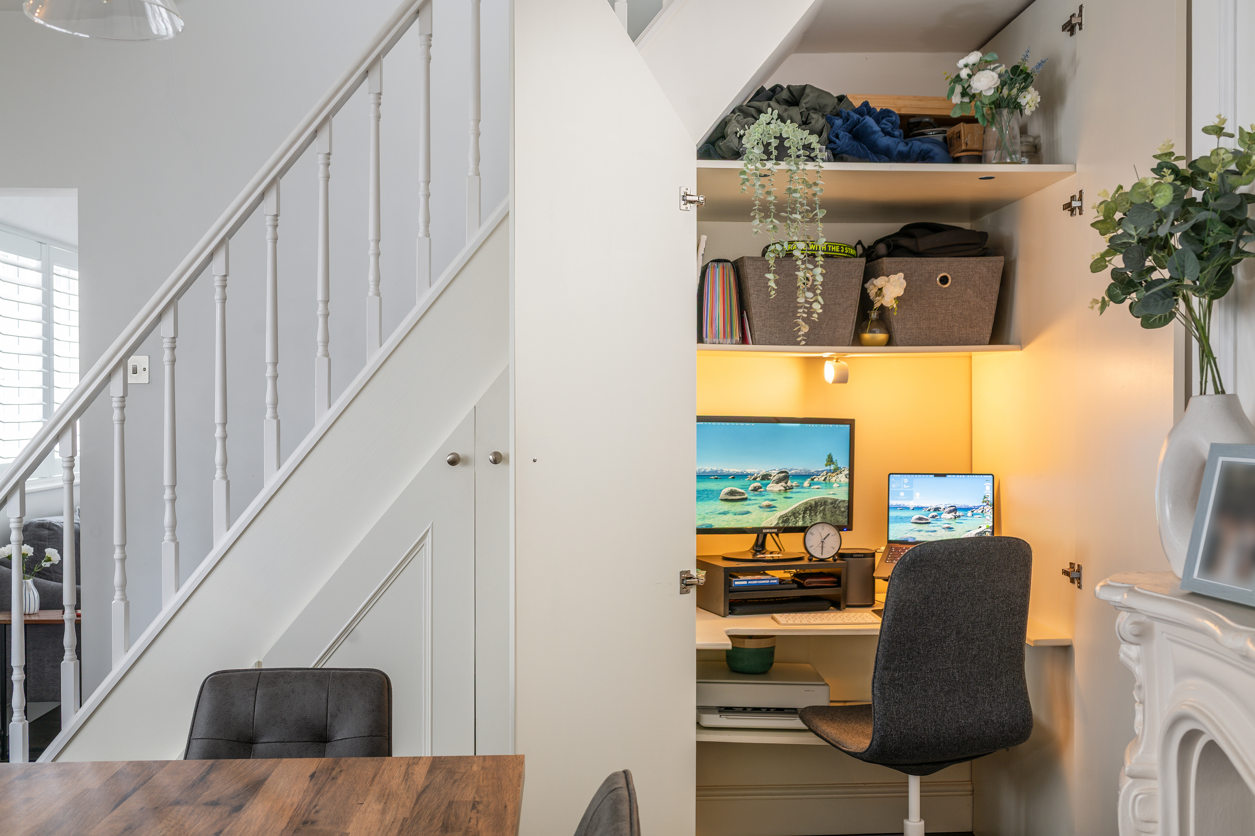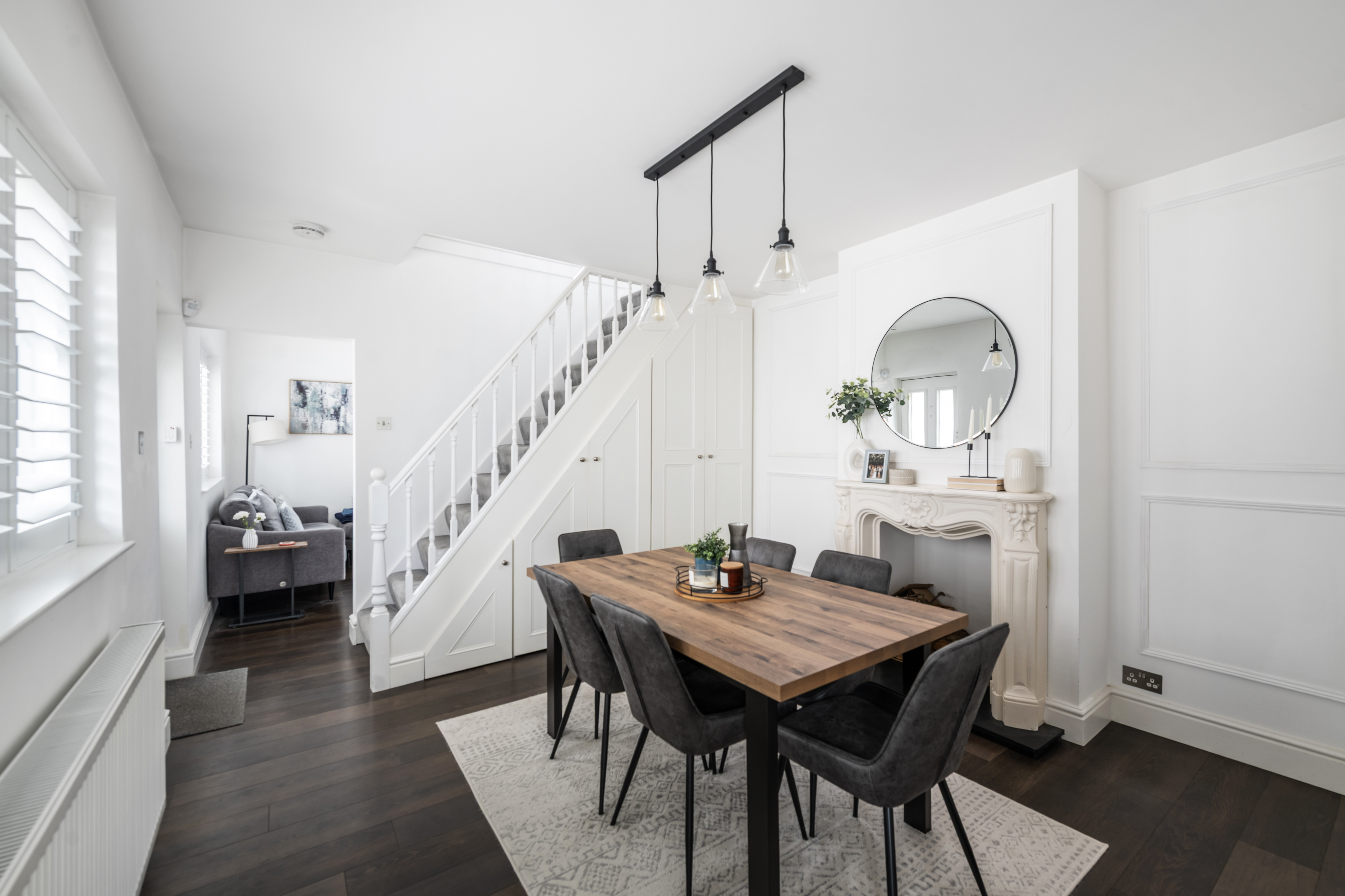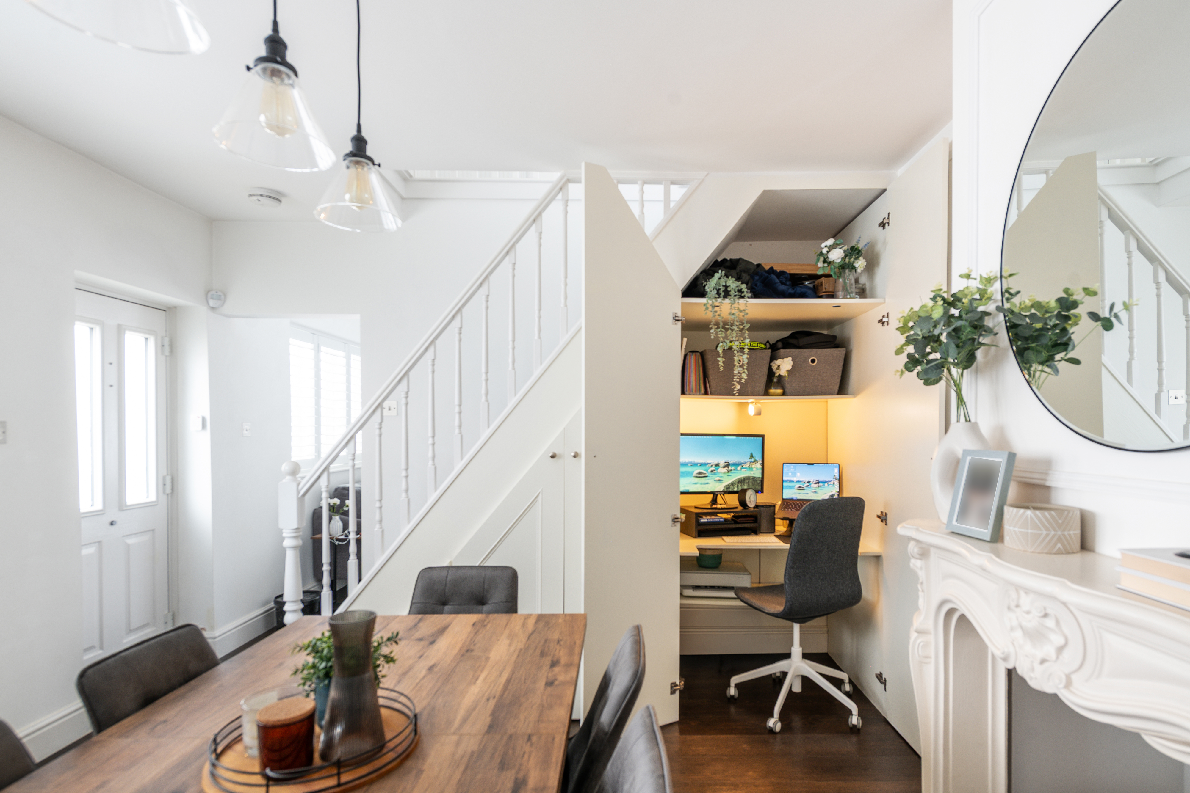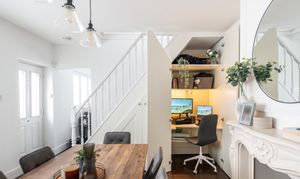- Spacious Dining Room With Feature Fireplace And Under Stairs Work Space