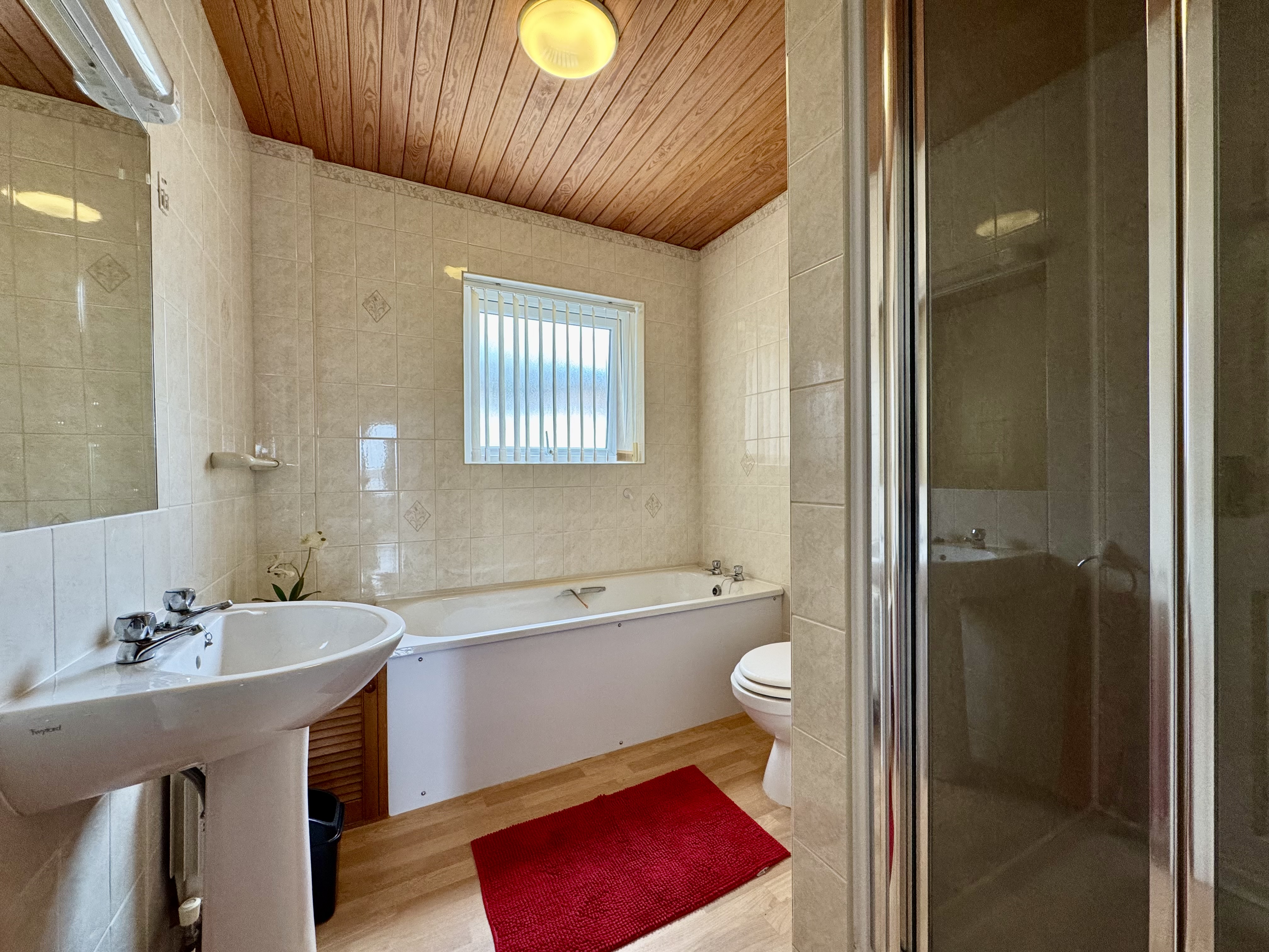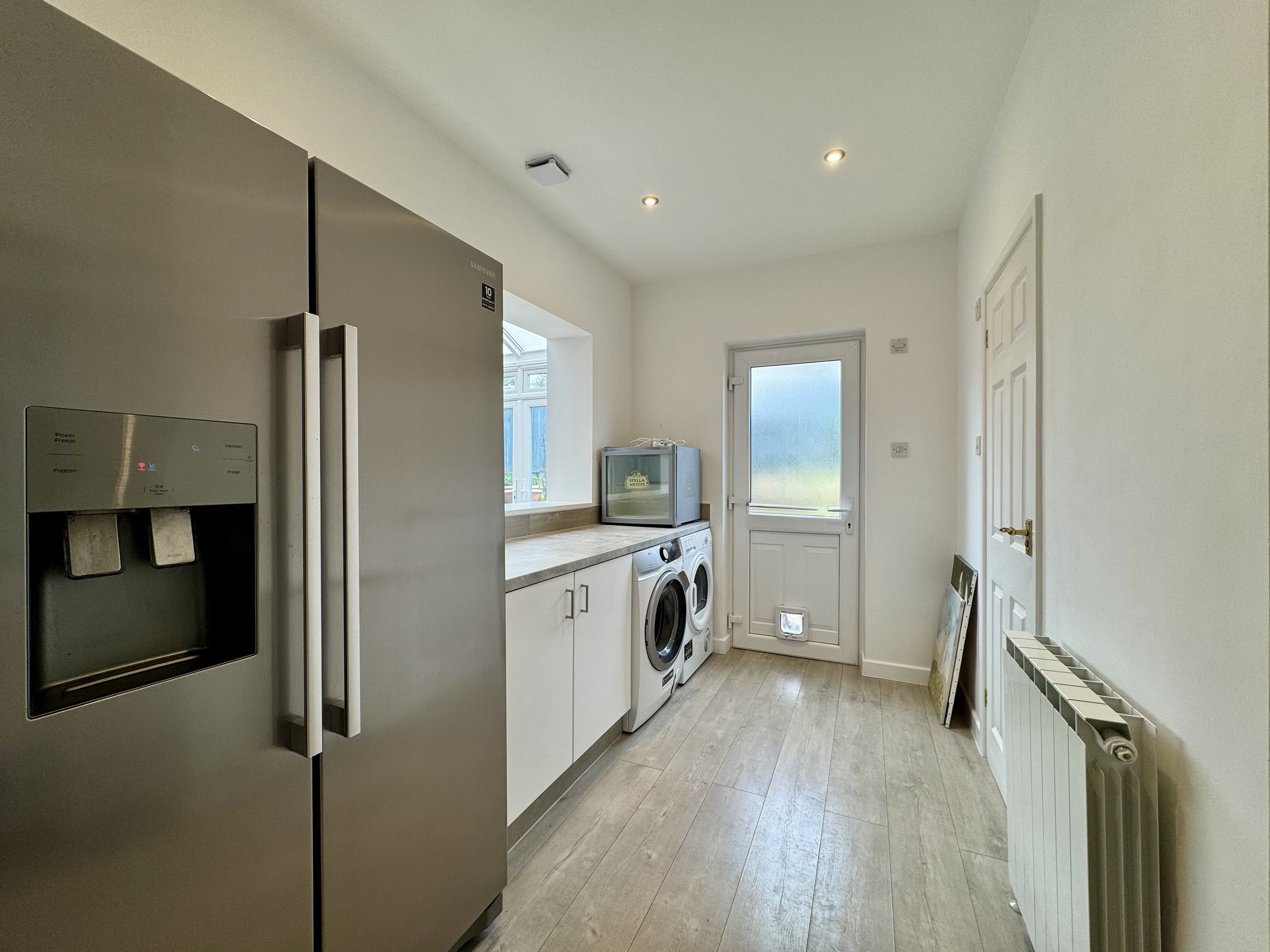 The ground floor comprises a good-sized lounge/dining room, a conservatory, a fully fitted kitchen, and a separate utility room. There is also a downstairs bathroom with a shower.
