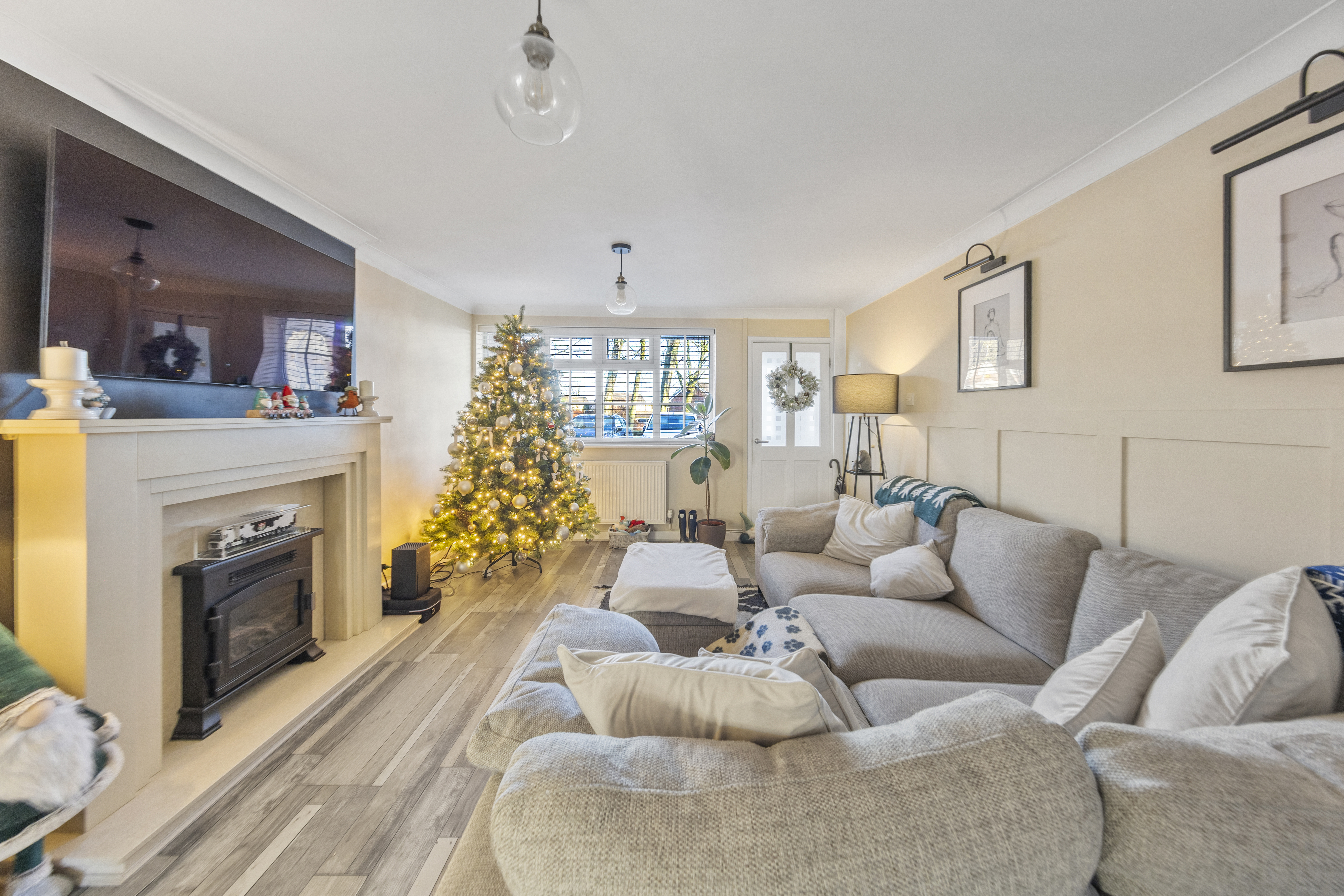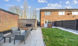This well-presented two-bedroom end-of-terrace house represents an excellent opportunity for first-time buyers or those seeking a practical and comfortable home in a sought-after location. The property opens with a welcoming entrance porch (providing a practical buffer from the outdoors), which leads into a bright and comfortable lounge, perfect for both relaxing evenings and entertaining guests. The stylish fitted kitchen/diner offers excellent storage and ample workspace, making meal preparation a pleasure, and features patio doors that open onto landscaped gardens finished with attractive porcelain tiles. Both bedrooms are generous doubles, ideal for accommodating families, guests, or creating a dedicated home working space. The well-appointed family bathroom serves both bedrooms and is designed for convenience and comfort. Throughout the property, gas central heating and double glazing ensure year-round warmth and energy efficiency. Direct access to both parking and a garage adds valuable convenience, making daily life that much easier. The location is superb, with a wide range of shops and schools within walking distance, and excellent road links that make commuting or travelling further afield especially straightforward. This property combines practical features with a stylish interior, offering a move-in ready home that will appeal to a broad range of buyers. Whether you are stepping onto the property ladder for the first time or seeking a well-located, low-maintenance home, this end-of-terrace house is not to be missed.