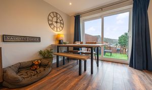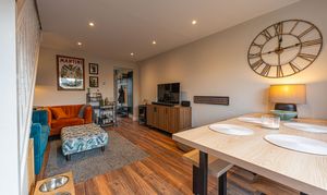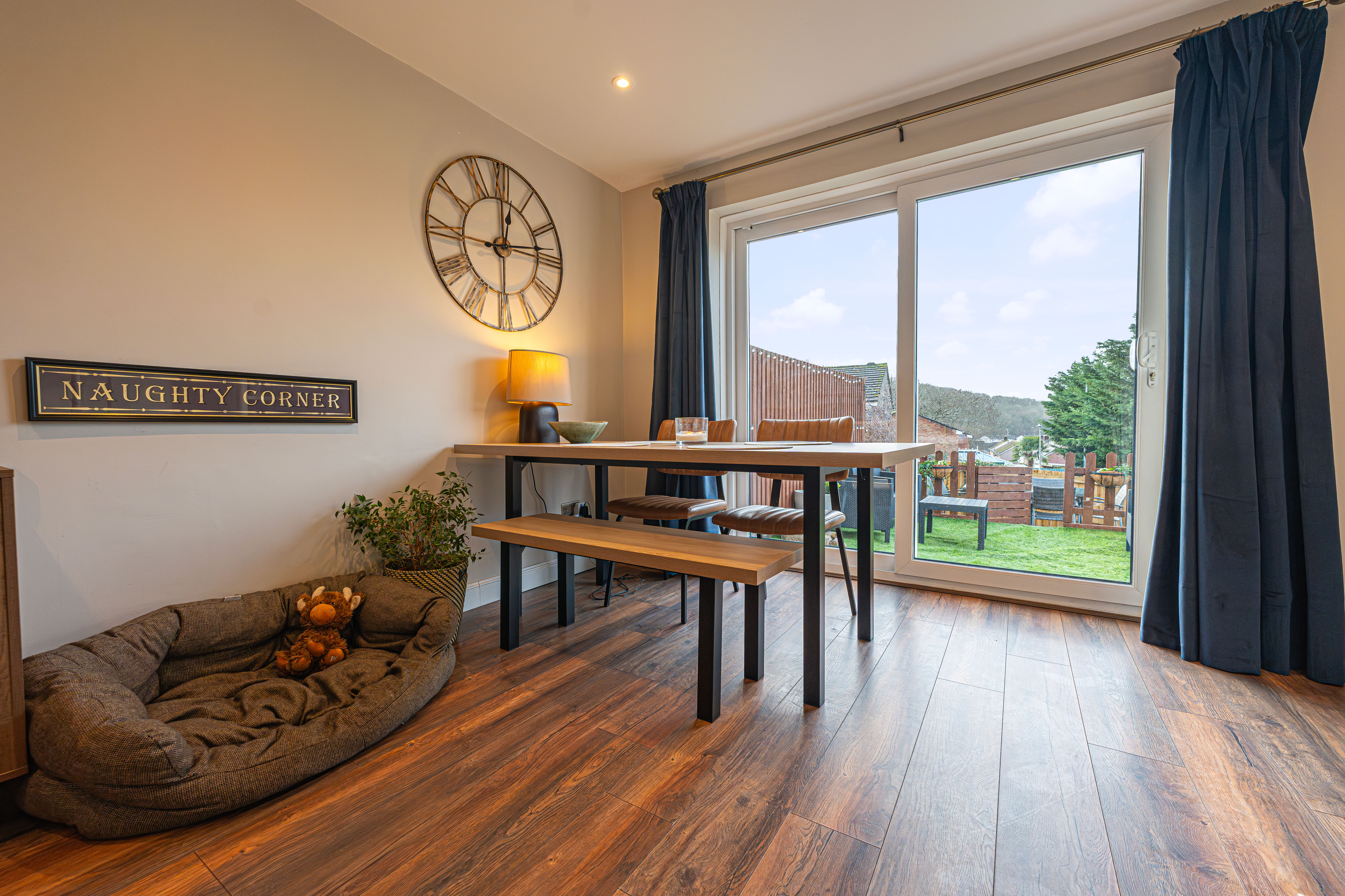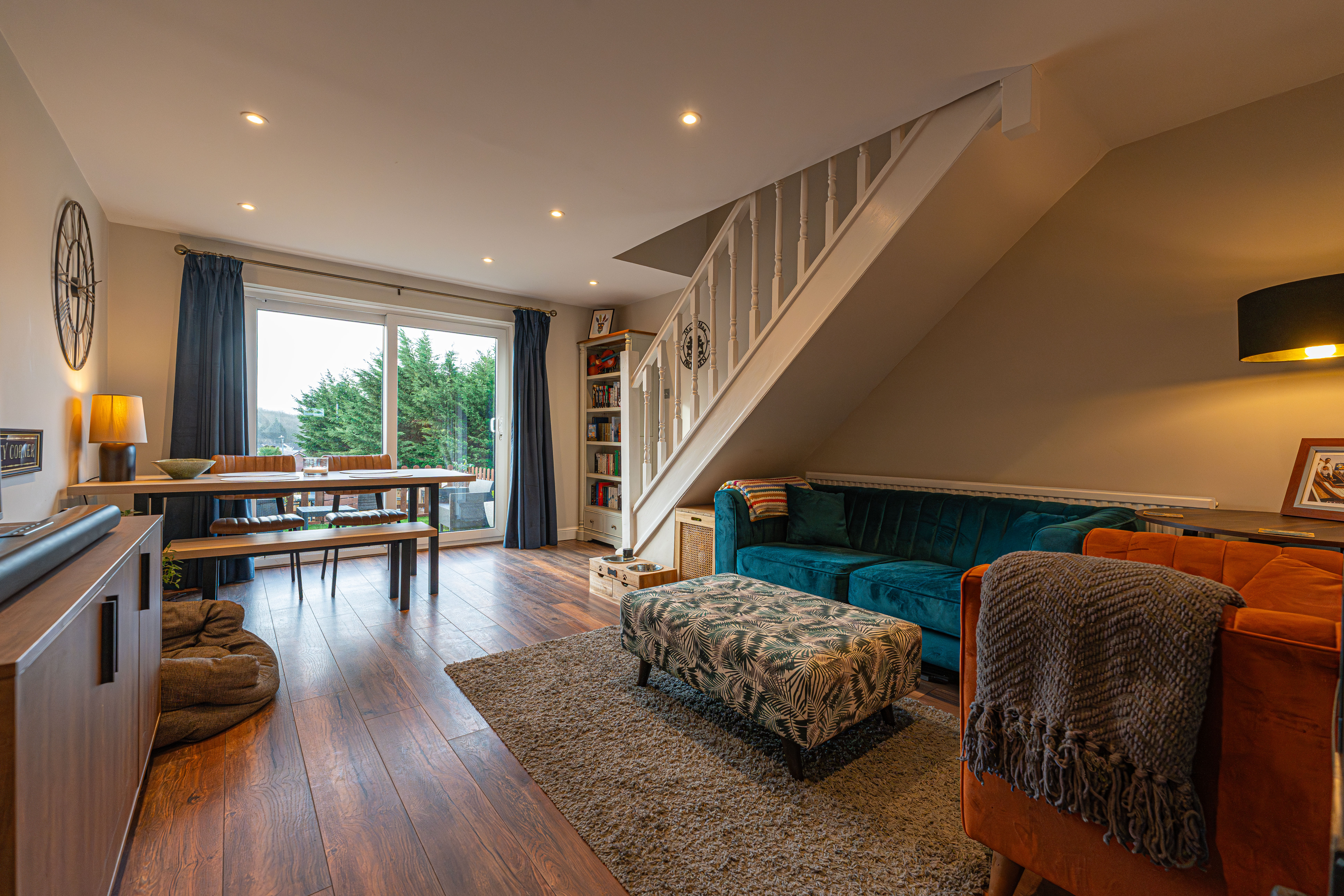 The property benefits from a bright open-plan lounge and dining room with sliding patio doors leading to the rear garden, creating excellent natural light and an ideal entertaining space.